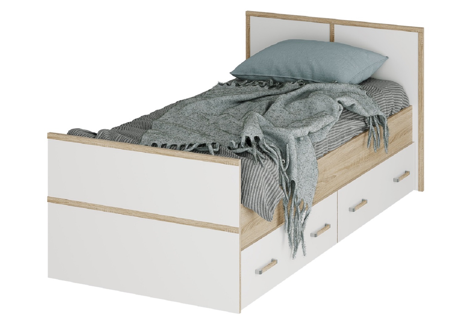 Практичное решение для организации пространства: ящики можно использовать для хранения постельного белья, сезонных вещей или других предметов. Рекомендуемая высота матраса для данной модели составляет 17-18 см.
