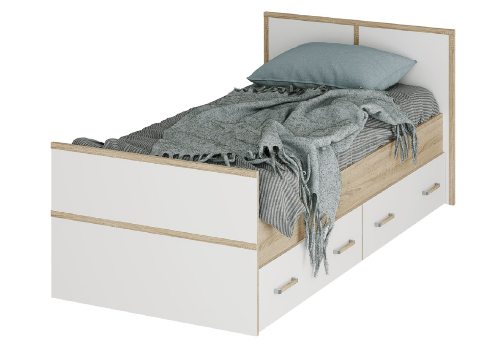 Отзывы о Столплит Кровать Сакура с проложками ДСП 90х200 Дуб Сонома, Белый