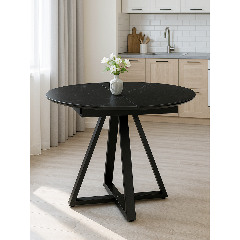 Керамический стол Нельсон с размерами 100(140)х100х76 см и механизмом раскладки "бабочка" — это стильный и функциональный предмет мебели, который отлично подойдет для современных интерьеров. Основа столешницы МДФ - 16мм, сверху керамическое полотно - 6мм