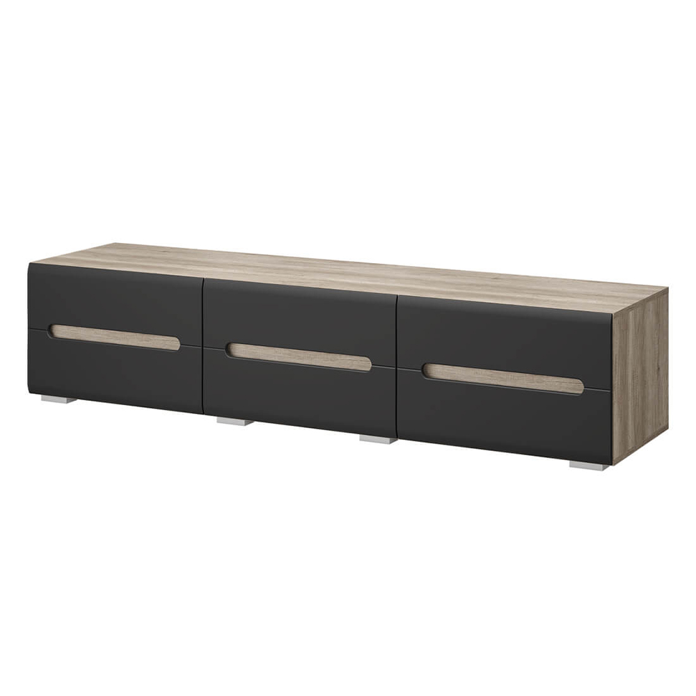 Всеми любимая модульная коллекция Наоми теперь в новом модном исполнении - дуб каньон и графит нубук. Приятный корпус под дерево и матовые темные фасады - такое контрастное сочетание сделает интерьер Вашей гостиной теплым и добавит комнате стиля. Всего нескольких модулей достаточно, чтобы обыграть пространство и сделать гостиную функциональной.