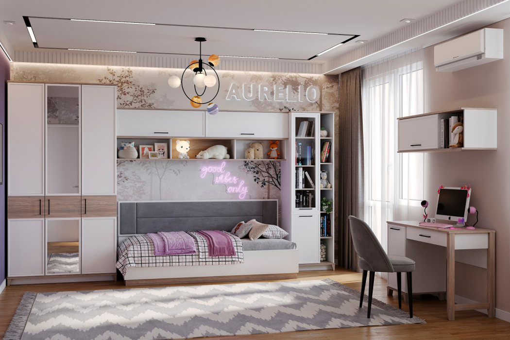 Детская Аурелио - это идеальное решение для создания уютного и функционального пространства для Вашего ребенка. Этот комплект включает в себя все необходимые элементы для комфортного отдыха и активной деятельности.