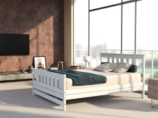 Двуспальная кровать "IRINA" ОЧЕНЬ КРЕПКАЯ так как усилена двойными рейками 20*90 мм по всем сторонам кровати. Благодаря 5 опорным стойкам по середине двуспальной кровати устойчивость повышена, чтобы выдерживать максимальный вес 200 кг.