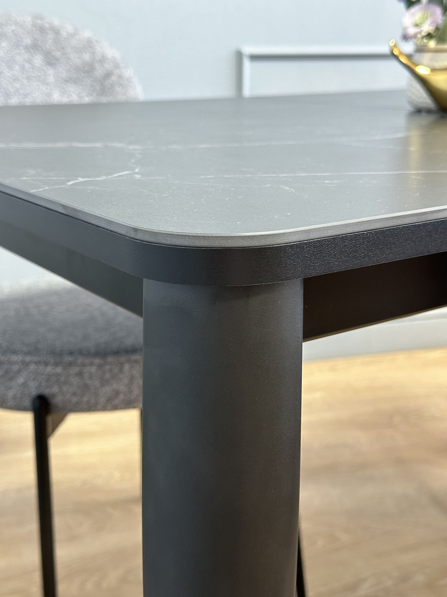 В столе используются дизайнерские опоры, которые Вы не встретите у других столов. Тонкие, очень прочные, они дают достаточную ширину для того, чтобы поставить 2 больших стула по широкой стороне стола. Обеспечивают столу идеальную устойчивость.