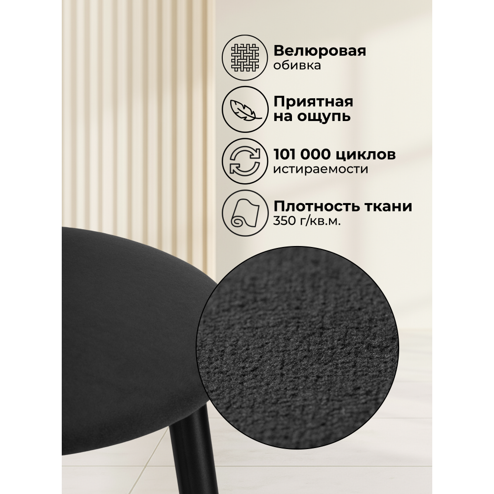 Полубарный стул Гангток - комфортный высокий стул без спинки с каркасом и ножками из металла. Сиденье стула вращается, обито мягким и приятным на ощупь велюром, что создает комфортное и уютное ощущение при использовании. Каркас и ножки из металла обеспечивают прочность и долговечность стула, а также придают ему современный и элегантный вид.