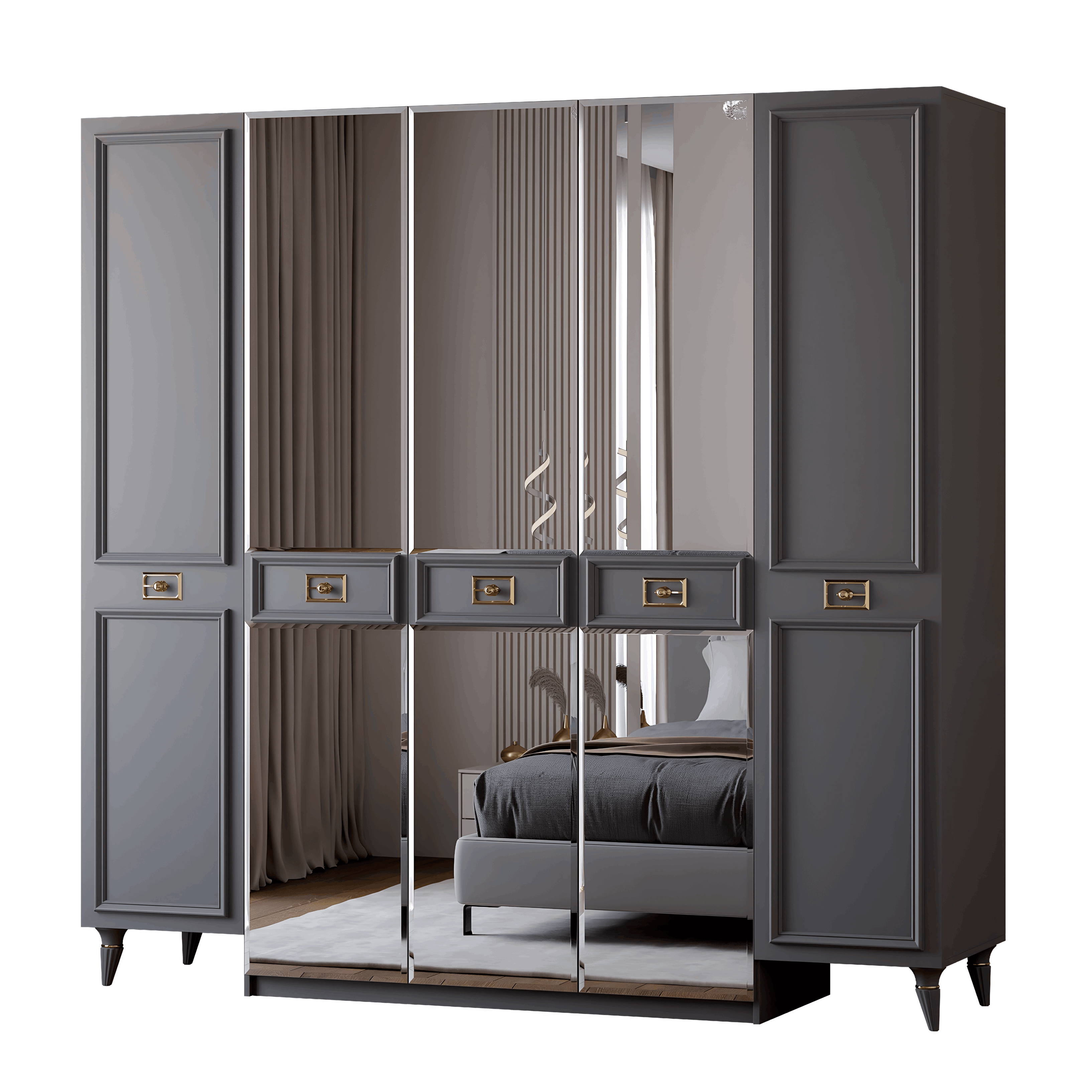 Шкаф в спальню 5-ти дверный Валенсия (золото) (Серый)