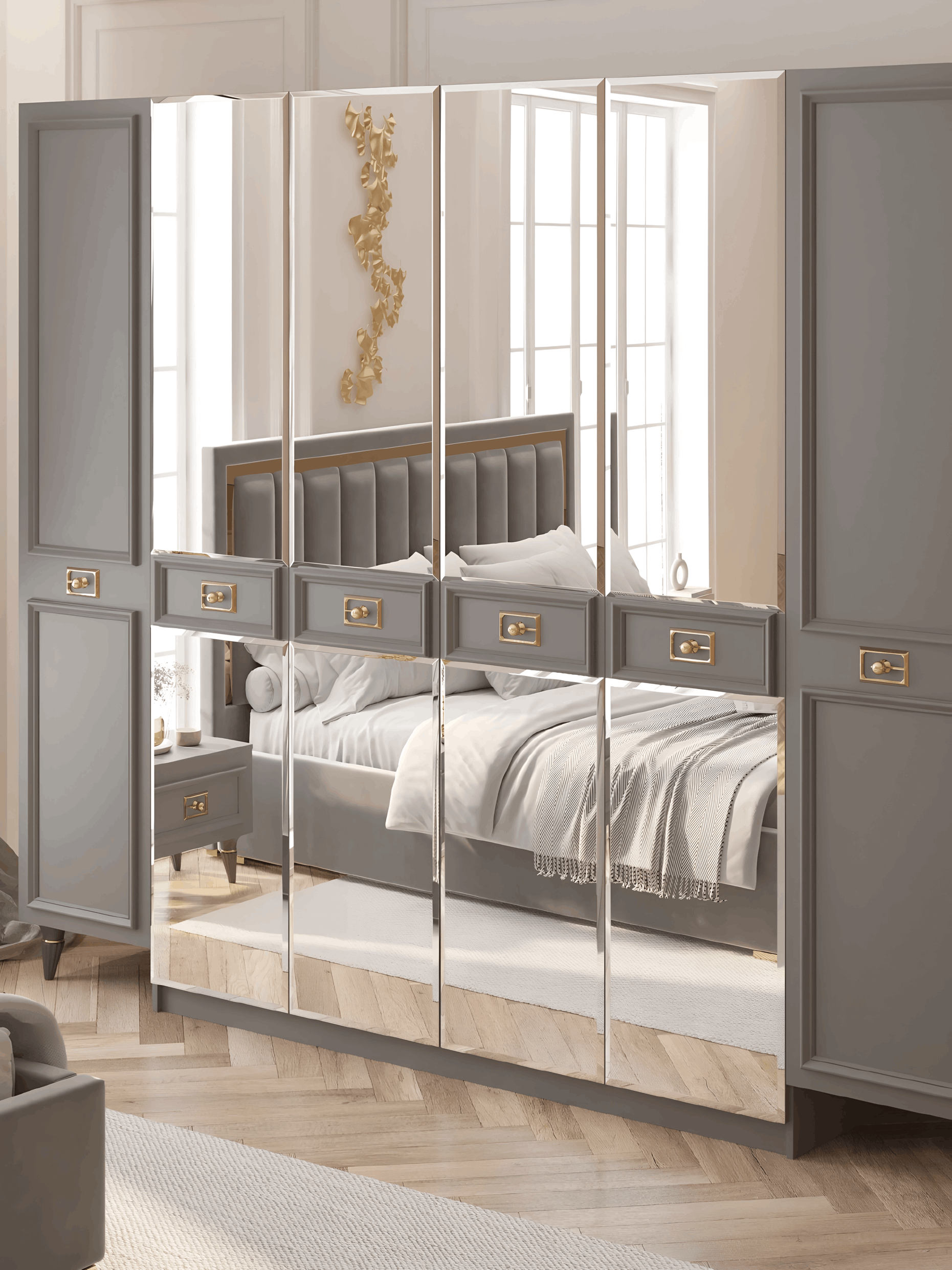 Неоклассический Стиль: С этим шкафом вы возвращаетесь в эпоху изысканных классических форм и изящества. Оригинальный дизайн воплощает в себе лучшие элементы неоклассического стиля, что делает его неотъемлемой частью искусства в вашей спальне.