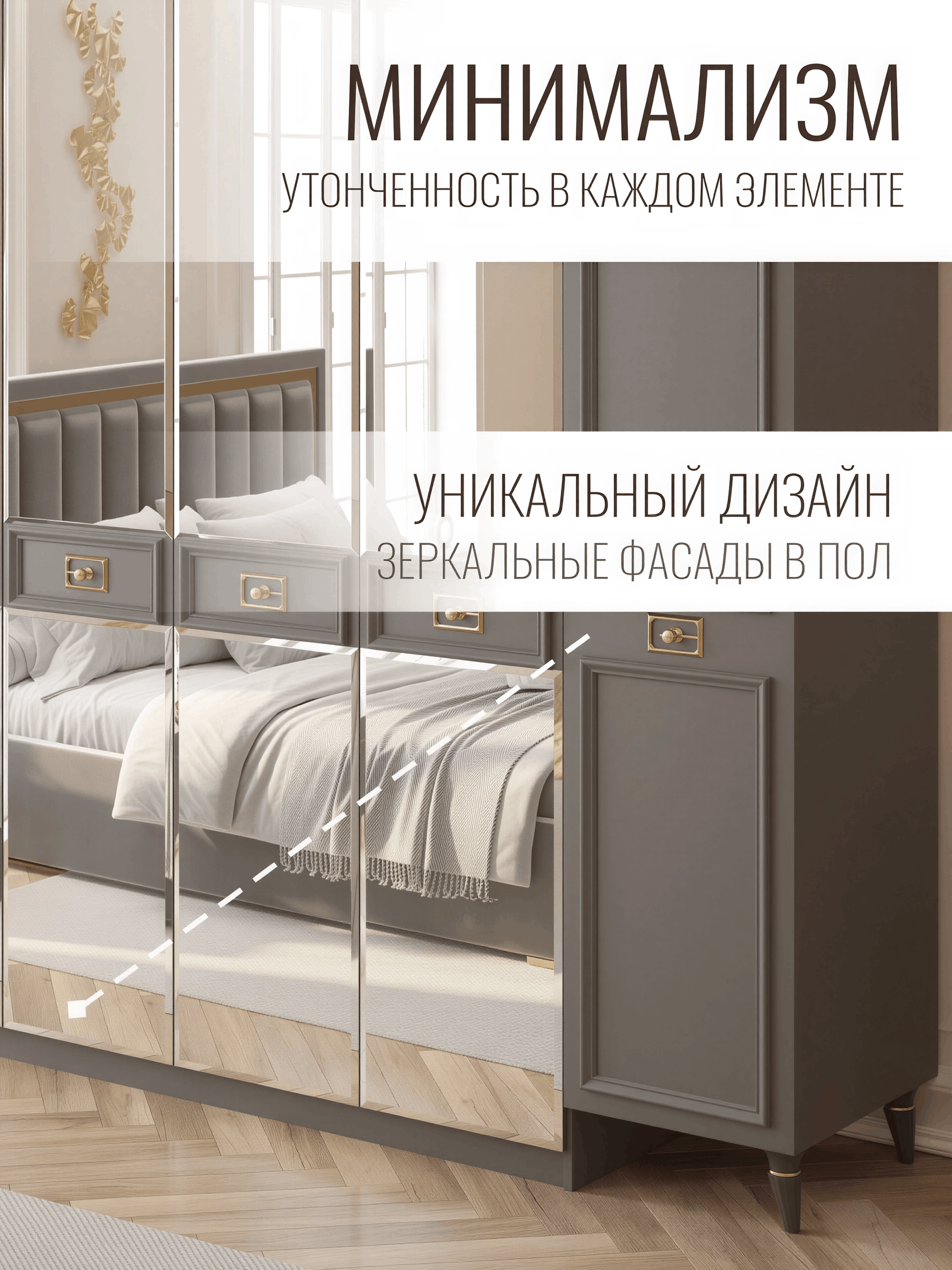 Представляем вам великолепный шкаф для спальни, который не просто мебель, а настоящее произведение искусства в стиле неоклассика. Этот шедевр не только обеспечивает вас максимальным пространством для хранения, но также станет эпицентром изыска и элегантности в вашей спальне.