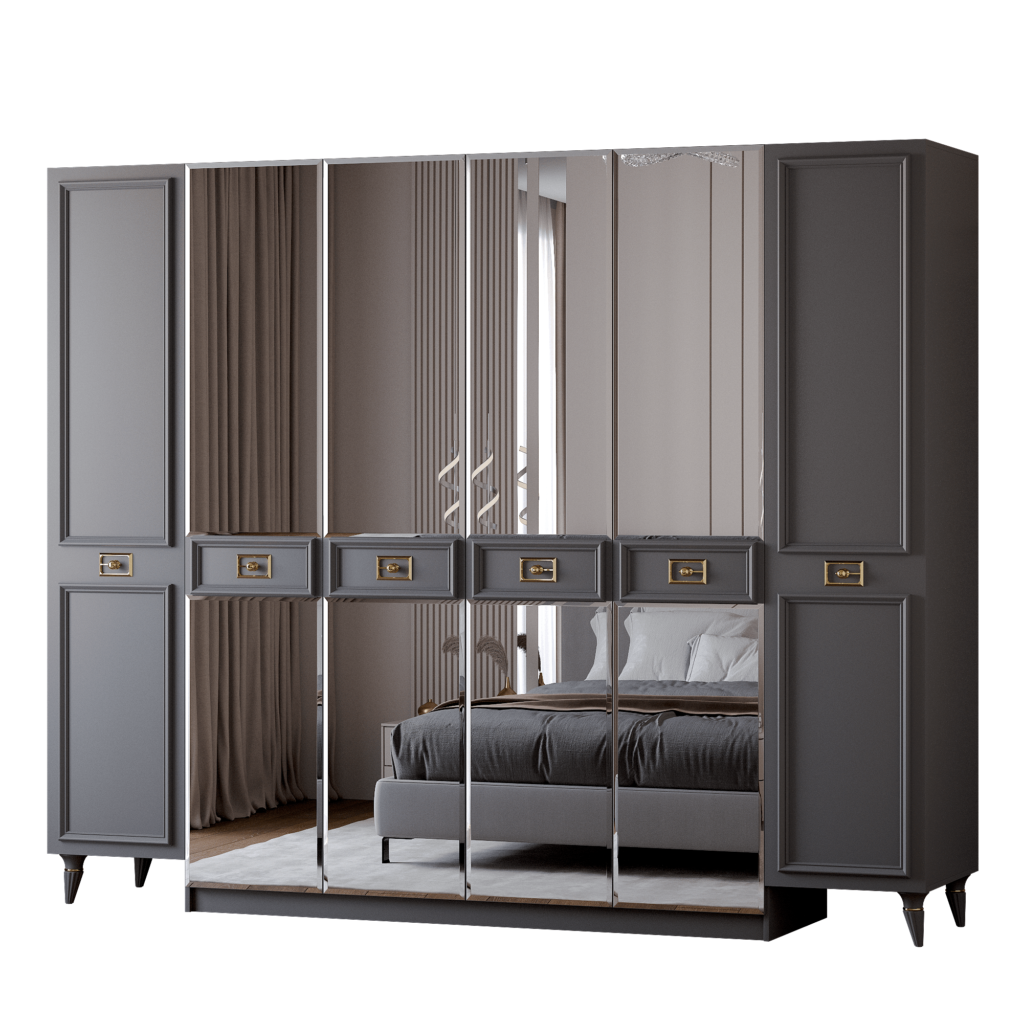 Шкаф в спальню 6-ти дверный (золото) (Серый) Код I0000442822