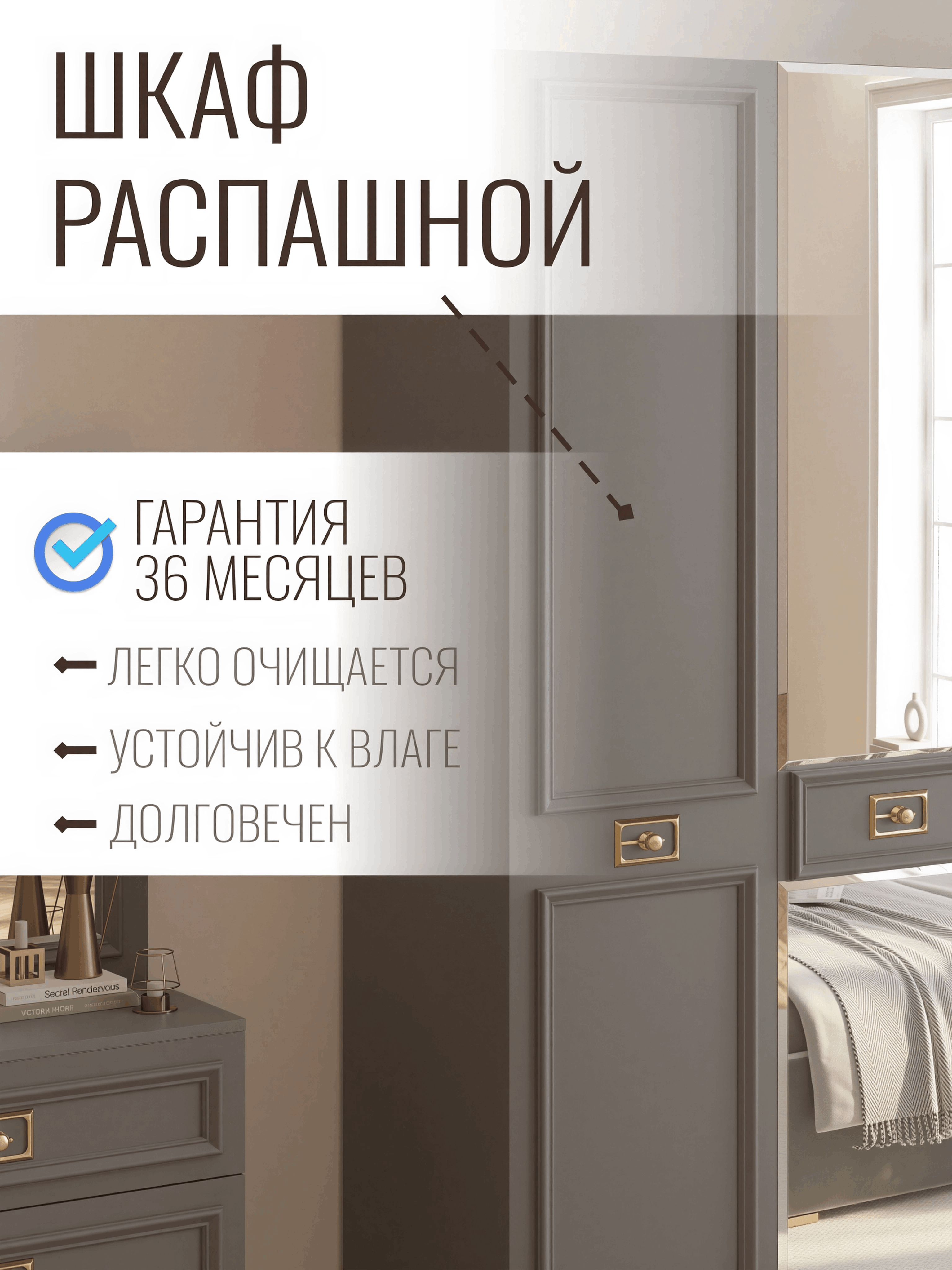 Этот шкаф легко впишется в спальню любого стиля, добавляя атмосферу роскоши и утонченности. Он подчеркнет вашу индивидуальность и стиль, придавая вашему пространству неповторимый характер. Создайте привлекательное и организованное пространство с помощью этого шкафа в стиле неоклассика, который является не просто мебелью, но и источником вдохновения и изыска.