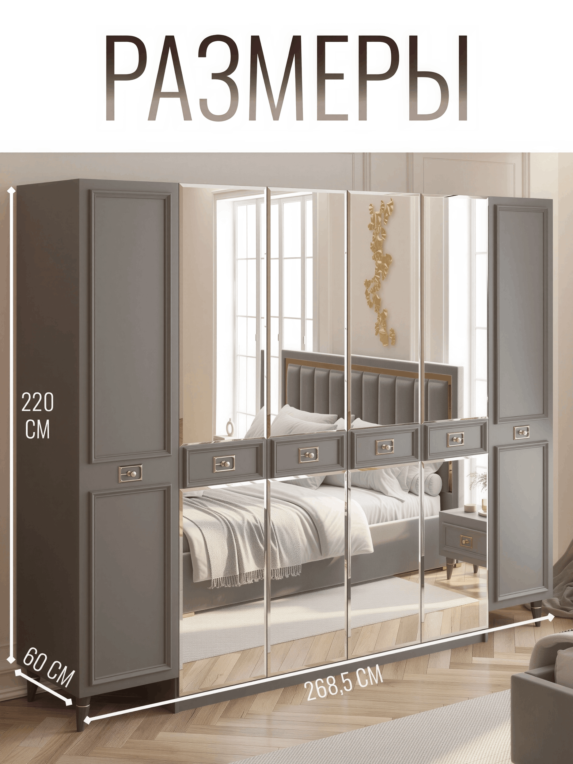 Этот шкаф легко впишется в спальню любого стиля, добавляя атмосферу роскоши и утонченности. Он подчеркнет вашу индивидуальность и стиль, придавая вашему пространству неповторимый характер. Создайте привлекательное и организованное пространство с помощью этого шкафа в стиле неоклассика, который является не просто мебелью, но и источником вдохновения и изыска.