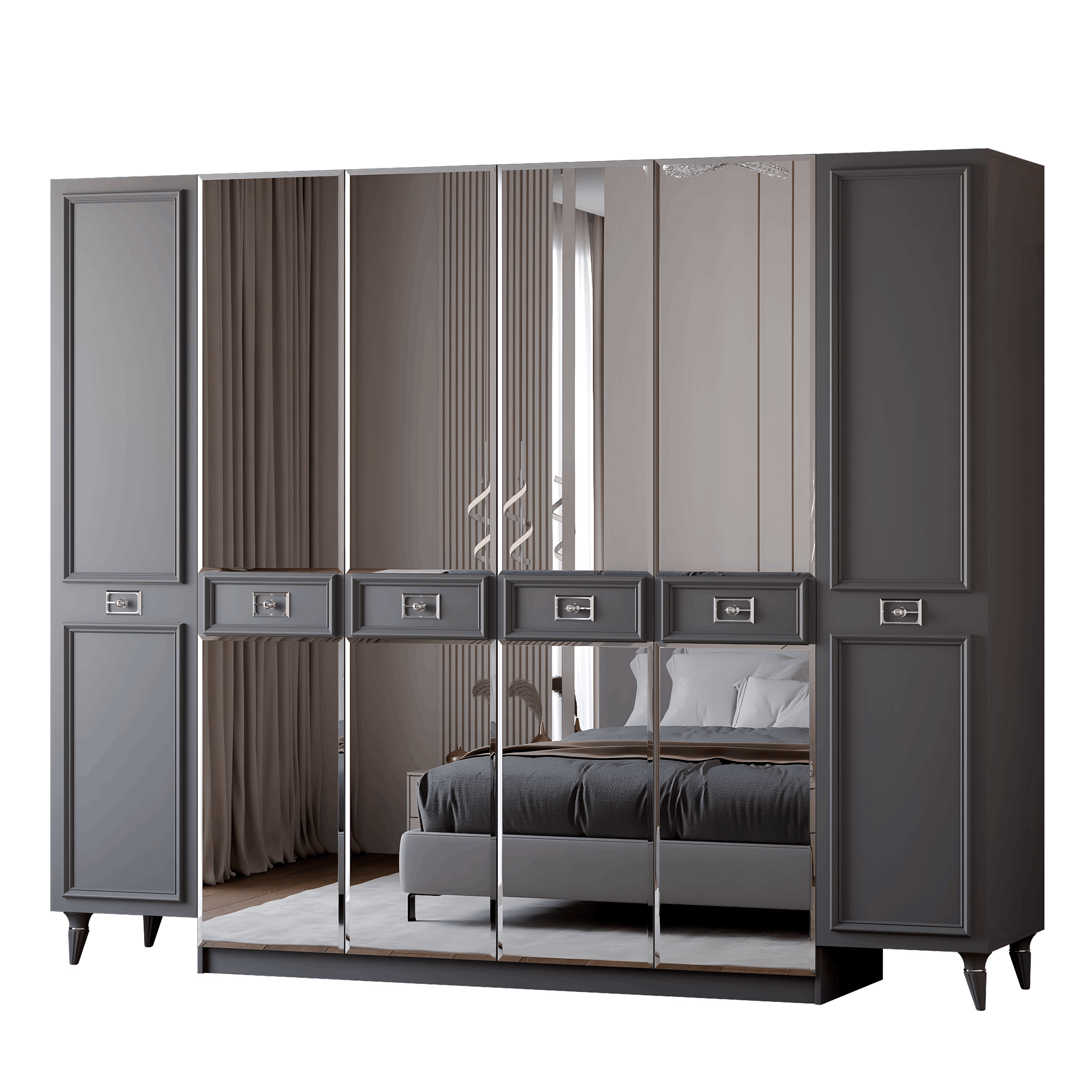 Шкаф в спальню 6-ти дверный Валенсия (серебро) (Серый)