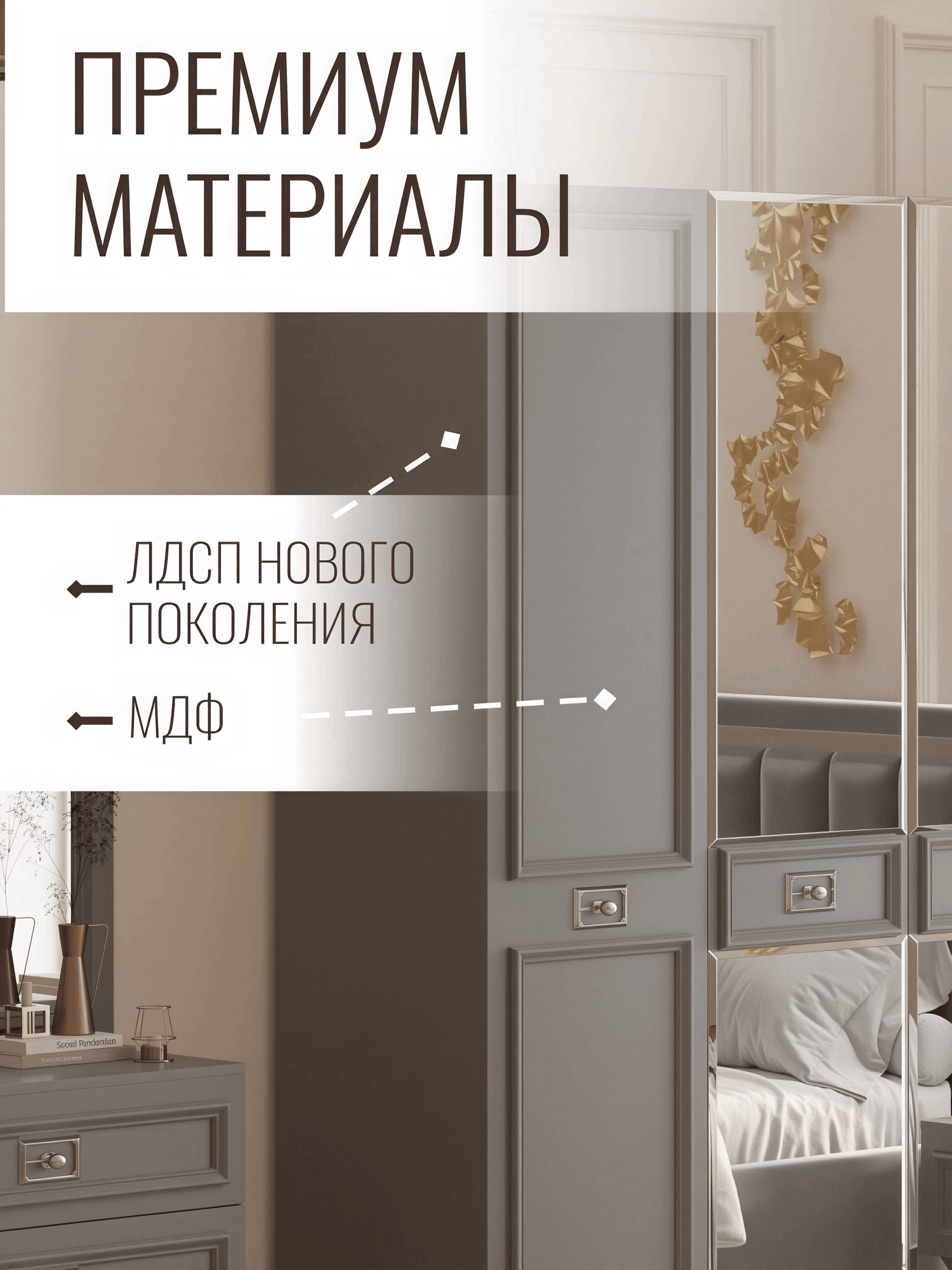Этот шкаф легко впишется в спальню любого стиля, добавляя атмосферу роскоши и утонченности. Он подчеркнет вашу индивидуальность и стиль, придавая вашему пространству неповторимый характер. Создайте привлекательное и организованное пространство с помощью этого шкафа в стиле неоклассика, который является не просто мебелью, но и источником вдохновения и изыска.
