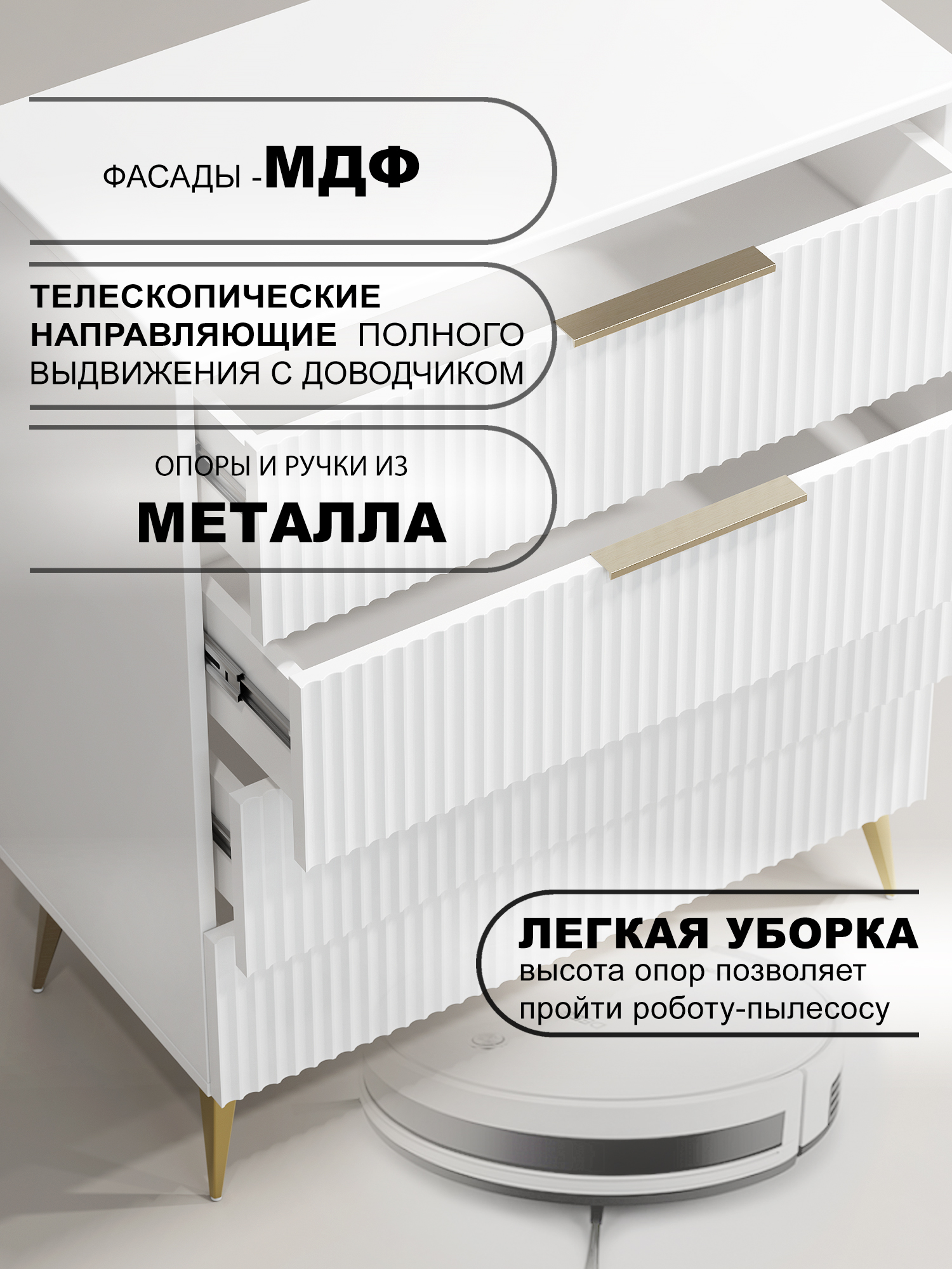 Четыре выдвижных ящика на телескопических направляющих