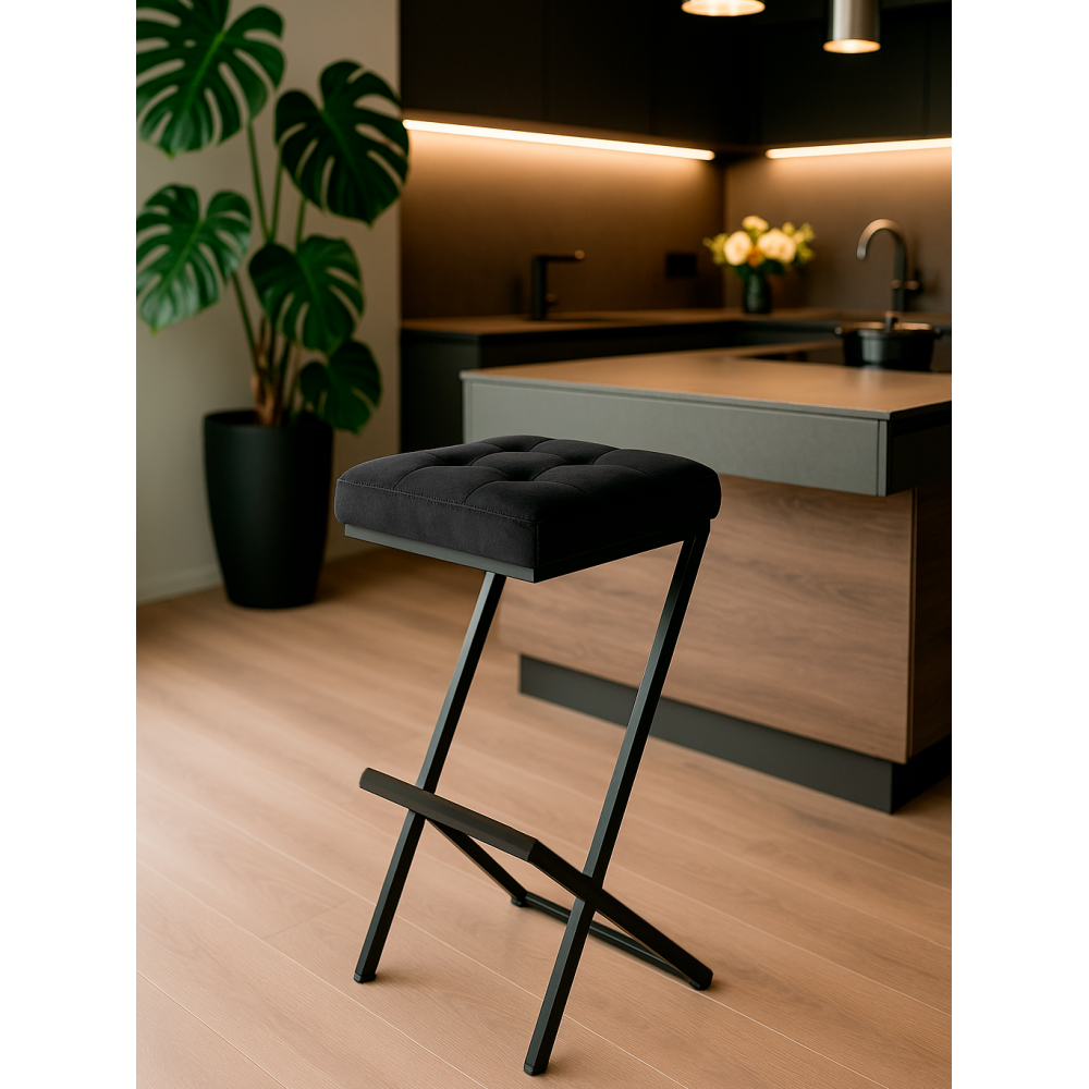 Высота подножки: 22 см. Материал каркаса - Металл; Материал сиденья - Велюр; Материал ножек - Металл; Материал обивки - Велюр; Цвет каркаса - Черный; Цвет ножек - Черный; Ширина - 35; Глубина - 36; Высота - 64; Ширина сиденья - 34; Глубина сиденья - 35; Высота сиденья - 64.