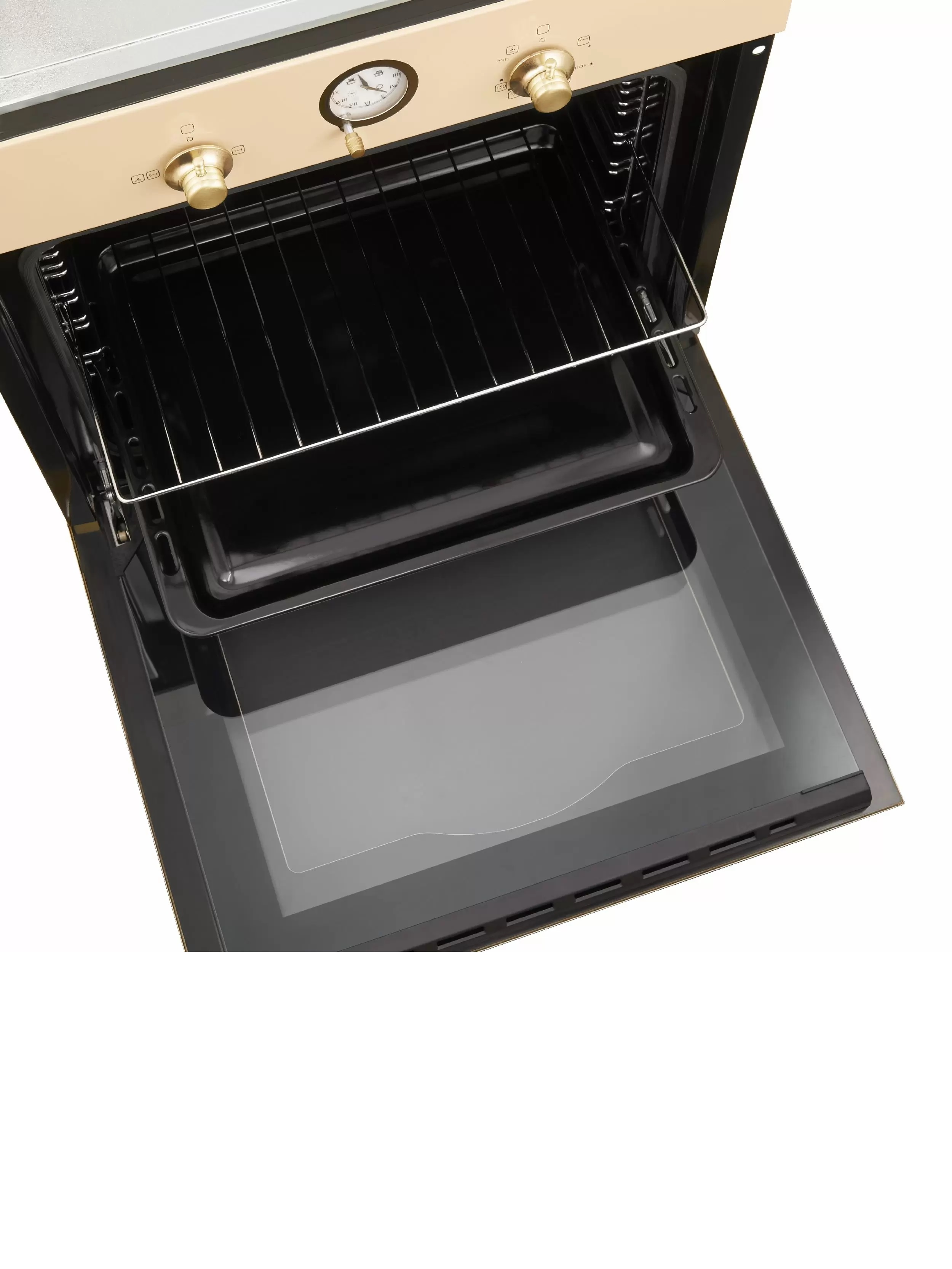Духовой шкаф встраиваемый полноразмерный,газовый,бежевый,retro,60 см,4 режима, объем духовки 67л, поворотные переключатели, автоподжиг, 5 уровней размещения противней, боковые хромированные рещетки,вертел, универсальный противень, решетка, двойное стекло дверцы, защитное отключение,система охлаждения корпуса, механический таймер,595 х 560 х 575 мм.