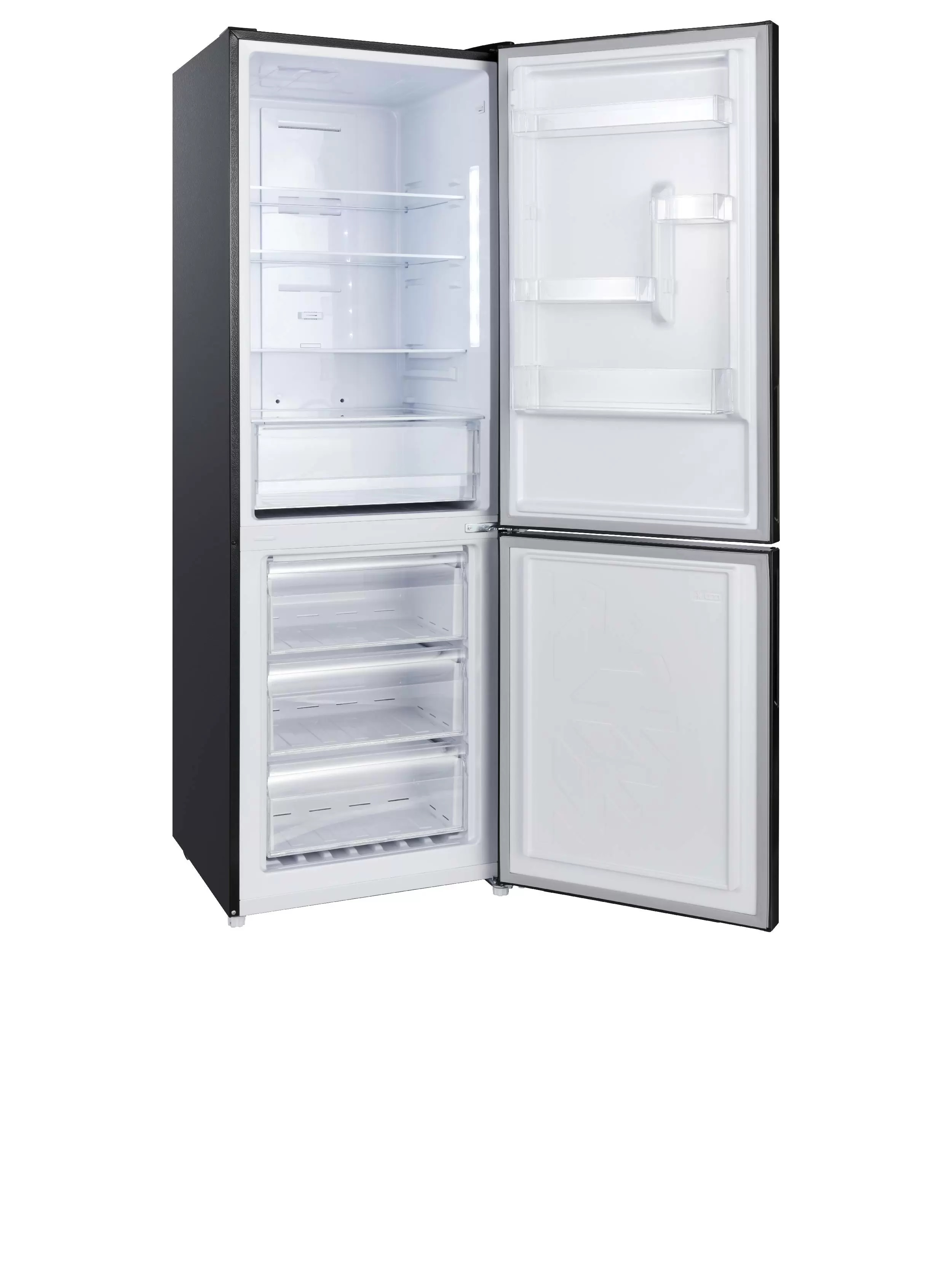 Холодильник-морозильник с функцией No Frost, цвет: черная нержавеющая сталь, класс энергопотребления: A+, электронное управление с внешним дисплеем, зона свежести, 3 полки из закаленного стекла, 4 прозрачных дверных полок, подставка для яиц, контейнер для льда, LED освещение х/о. Количество компрессоров: 1. Мощность замораживания (кг/24 ч): 4,5. Длительность сохранения холода при отключении электроэнергии (ч): 7. Общий полезный объем 317л. Объем нетто холодильного отделения, л: 233, объем нетто морозильного отделения, л: 94, уровень шума 41 дБ, 1855х595х635 мм.
