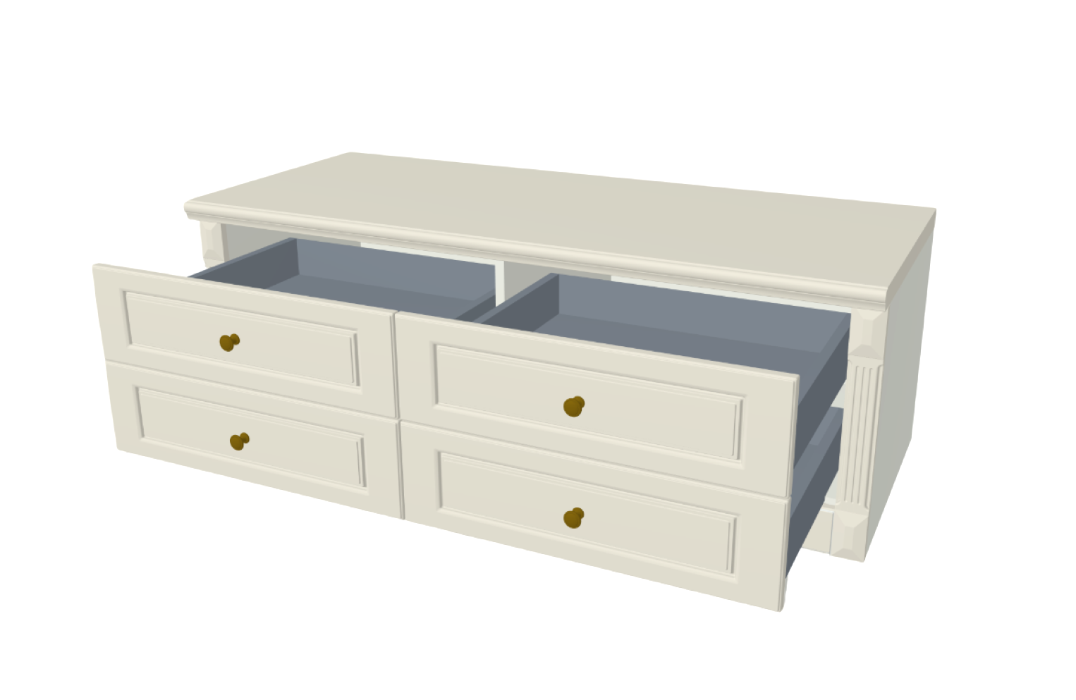 Мебель выполнена из МДФ с 3D-фрезеровкой, его отличают высокая прочность и долговечность, экологичность и безопасность. Две вариации шкафов – с глухим и стеклянным фасадом позволят как разместить книги, сувениры, так и скрыть то, что необходимо от посторонних глаз.