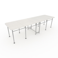 Каркас стола выполнен из металлических профилей, покрытых полимерной эмалью. Это обеспечивает долговечность и устойчивость конструкции. Столешница изготовлена из ЛДСП толщиной 16 мм, торцы столешницы защищены 1 мм кромкой из ПВХ.