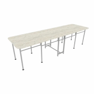 Каркас стола выполнен из металлических профилей, покрытых полимерной эмалью. Это обеспечивает долговечность и устойчивость конструкции. Столешница изготовлена из ЛДСП толщиной 16 мм, торцы столешницы защищены 1 мм кромкой из ПВХ.
