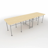 Каркас стола выполнен из металлических профилей, покрытых полимерной эмалью. Это обеспечивает долговечность и устойчивость конструкции. Столешница изготовлена из ЛДСП толщиной 16 мм, торцы столешницы защищены 1 мм кромкой из ПВХ.