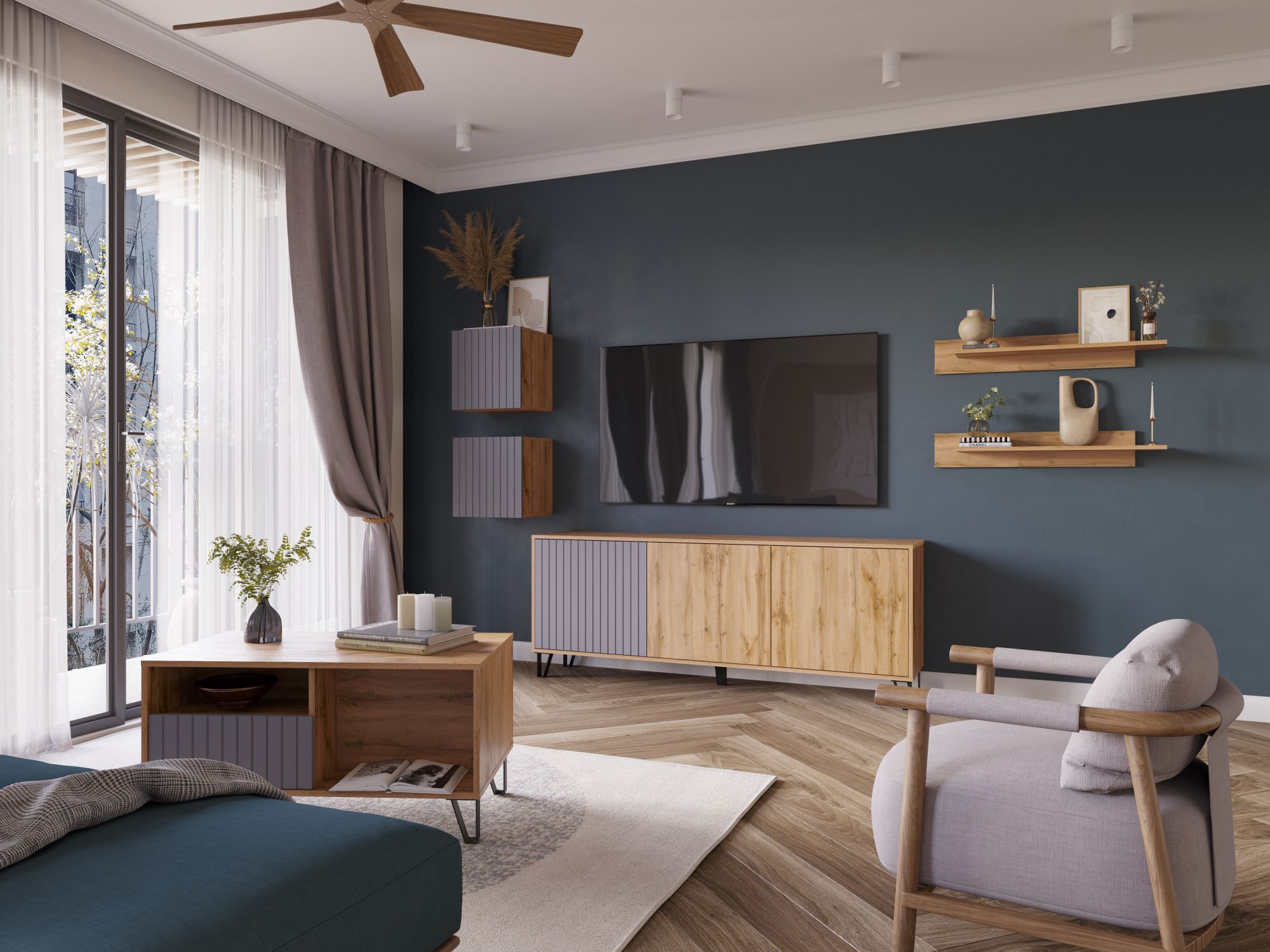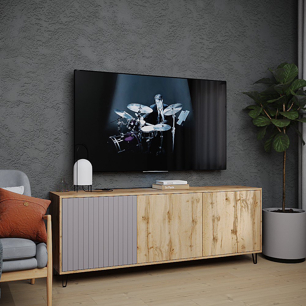 Тумба ТВ МС "Ливерпуль" (Дуб вотан/Диамант серый) Код I0000446520