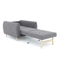 Кресло-кровать для отдыха. Каркас ДСП, ДВП, ЛДСП, фанера, брус хвойных пород. Спальное место 1900х600мм. Наполнение высокоэластичный ППУ. Наполнение подушки-крошка ППУ. Высота сиденья от пола 440мм. Глубина сиденья без подушки 600мм. Опора массив березы. Высота опоры 100мм.
