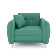 Кресло-кровать для отдыха. Каркас ДСП, ДВП, ЛДСП, фанера, брус хвойных пород. Спальное место 1900х600мм. Наполнение высокоэластичный ППУ. Наполнение подушки-крошка ППУ. Высота сиденья от пола 440мм. Глубина сиденья без подушки 600мм. Опора массив березы. Высота опоры 100мм.