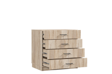 Комод «Классика», оснащённый четырьмя выдвижными ящиками с системой полного выдвижения, представляет собой многофункциональный предмет мебели, идеально подходящий для различных функциональных зон жилого пространства, таких как гостиная, кабинет или прихожая. Корпус комода изготовлен из ламинированной древесно-стружечной плиты (ЛДСП) толщиной 16 мм, что обеспечивает высокую прочность и долговечность конструкции. Эта модель демонстрирует превосходное сочетание эстетических и практических качеств, что делает её востребованным элементом современного интерьера.