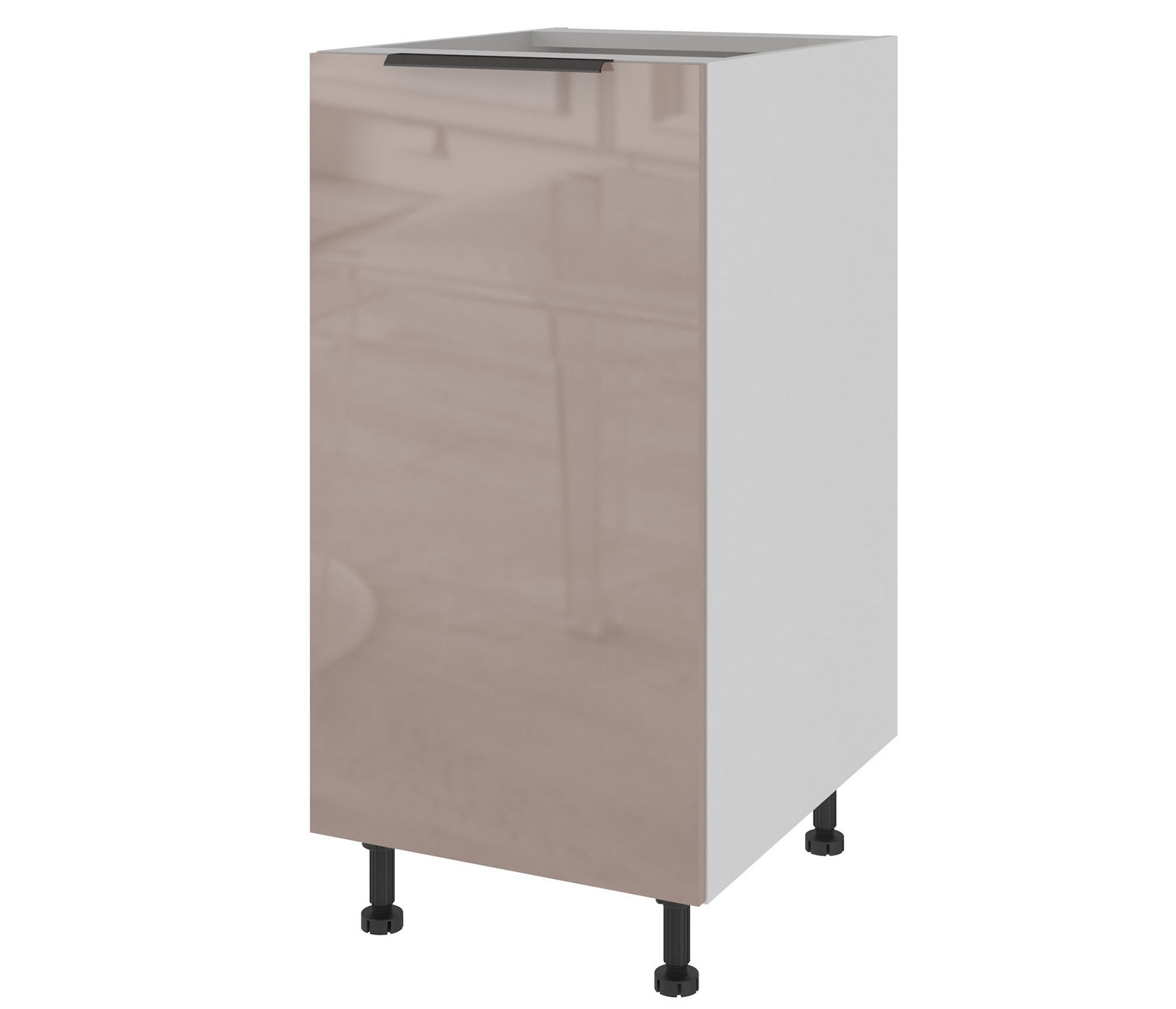 Высокоглянцевое покрытие (многослойная технология покрытия фасадов лаком). Опоры для тумб регулируемые высотой 100 мм. Цоколь белого цвета и Столешница приобретаются отдельно.