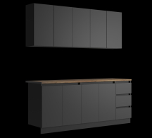 Нижние модуль состоит из - стол под мойку 800 мм, стол с полкой 800 мм и стол с ящиками 400 мм.