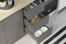 Универсальная сборка, петли с доводчиками на всех дверцах, ящики оснащены шариковыми направляющими полного выдвижения.
