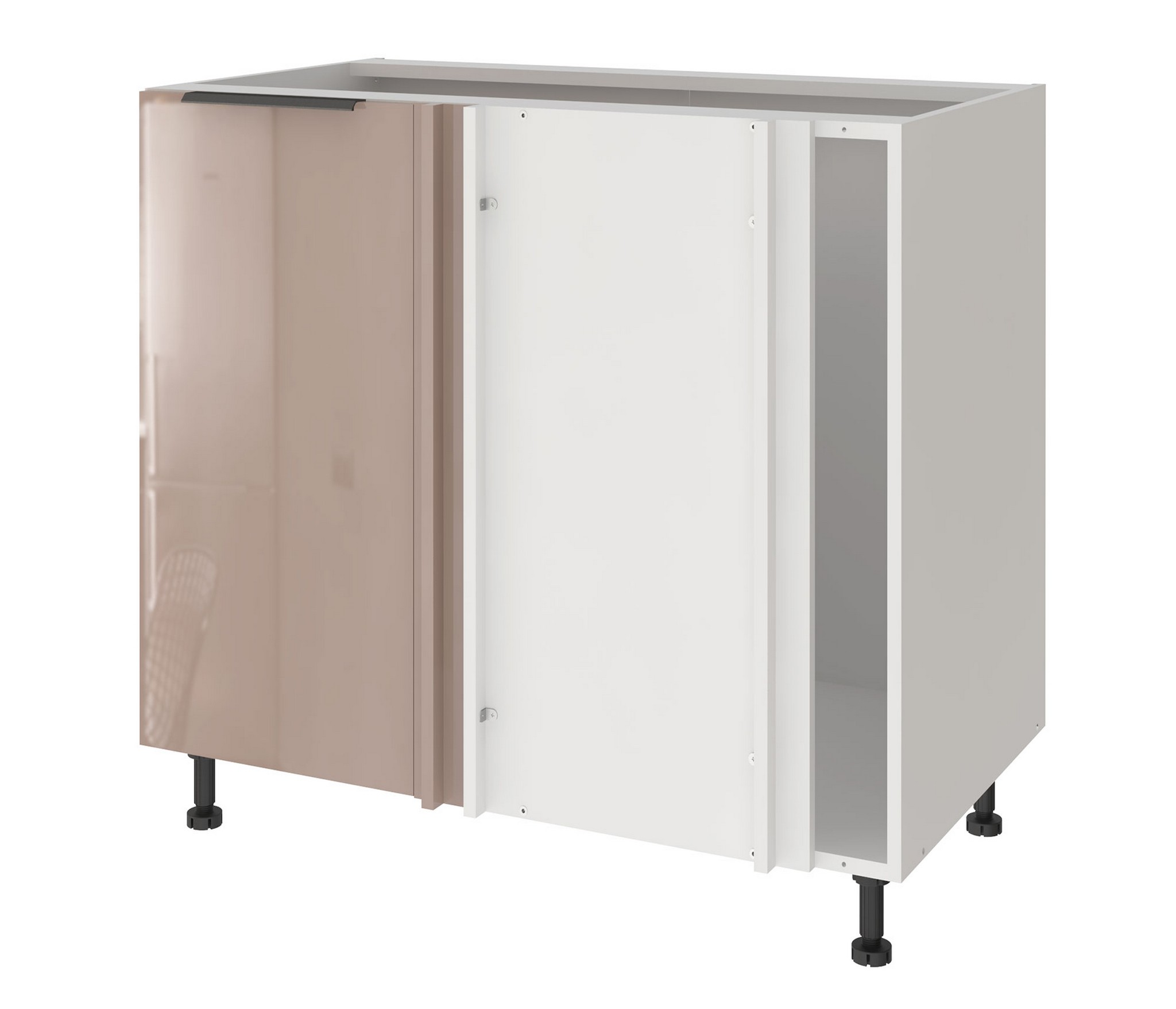 Высокоглянцевое покрытие (многослойная технология покрытия фасадов лаком). Опоры для тумб регулируемые высотой 100 мм. Цоколь белого цвета и Столешница приобретаются отдельно.
