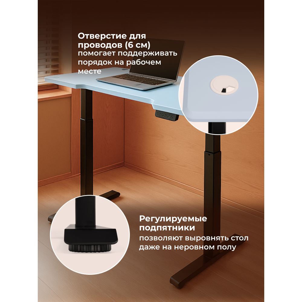 Компьютерный стол Маркос с механизмом подъема - это превосходный выбор для тех, кто ищет комфорт и функциональность в своем рабочем пространстве. Стол регулируется по высоте при помощи механизма с электроприводом, что позволяет настроить его высоту от 75 см до 115 см в зависимости от предпочтений пользователя. Мощные ножки стола обеспечивают устойчивость и надежность, что делает его идеальным для использования в домашнем офисе или рабочем пространстве. Отверстие для проводов диаметром 6 см в левом верхнем углу столешницы делает его удобным для использования компьютеров и других устройств, упрощая подключение кабелей и устройств. Столешница из МДФ с углублением под кресло обеспечивает удобство и комфорт во время работы, а крючок под наушники или другую периферию позволяет держать все необходимые предметы в удобном месте. В целом, компьютерный стол Маркос с механизмом подъема - это превосходный выбор для тех, кто ценит комфорт, функциональность и элегантный дизайн. Он легко интегрируется в любой интерьер и предоставляет множество опций для настройки высоты и работы с компьютером. Стол регулируется по высоте при помощи механизма с электроприводом. Механизм оснащен четырьмя предзаписанными уровнями высоты, а мануальный режим позволяет выставить и сохранить индивидуальную высоту. Механизм работает от сети. Максимальная нагрузка на механизм подъема: 80 кг. Расстояние между ножек: 129 см. Толщина ножек: 8,5 см. Диаметр отверстия под провода: 6 см.