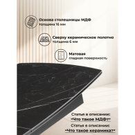 Керамический стол Риполь имеет столешницу, которая состоит из основы из МДФ и покрыта сверху керамическим материалом. Это делает столешницу прочной и долговечной, а также придает ей эффектный внешний вид. Керамическая поверхность также не требует особого ухода, что является еще одним преимуществом. Ножки и каркас стола изготовлены из металла. Это обеспечивает прочность и стабильность стола, а также защищает его от коррозии и повреждений. Стол Риполь имеет возможность раскладываться. Исходно его размер составляет 160 см, но при необходимости его можно увеличить до 205 см. Это позволяет адаптировать стол к различным потребностям и ситуациям, например, при приеме гостей или проведении больших семейных обедов. В целом, керамический стол Ливи сочетает в себе прочность, долговечность, эстетичный внешний вид и функциональность, что делает его отличным выбором для обустройства кухни или столовой. Основа столешницы из МДФ - 16мм, сверху керамическое полотно - 6мм. Порошковое окрашивание - дополнительная защита от царапин. Массивные ножки толщиной 3мм. Устойчивая и надёжная конструкция