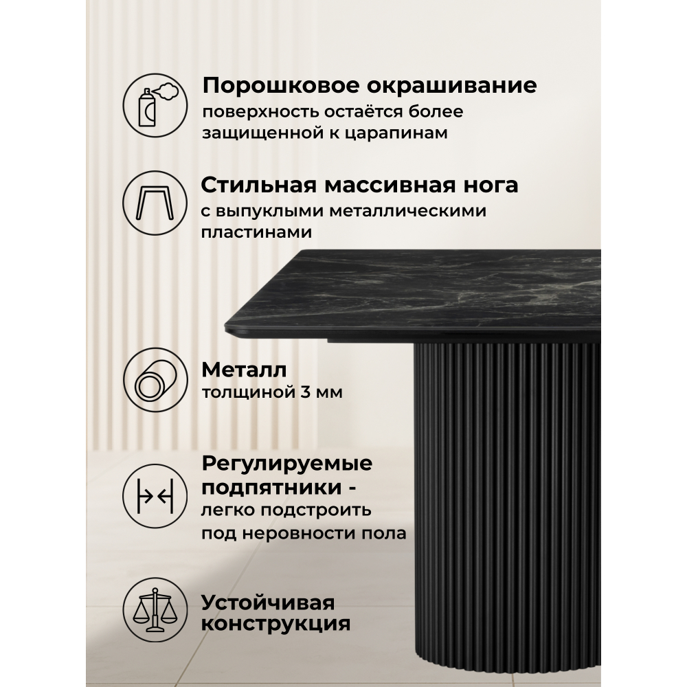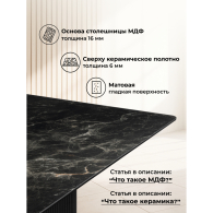 Керамический стол Ривера — это стильный и функциональный предмет мебели, который отлично впишется в современный интерьер. 220 см в длину, 110 см в ширину. Основа столешницы из МДФ - 16мм, сверху керамическое полотно - 6мм. Порошковое окрашивание - дополнительная защита от царапин. Массивные ножки толщиной 3мм. Устойчивая и надёжная конструкция