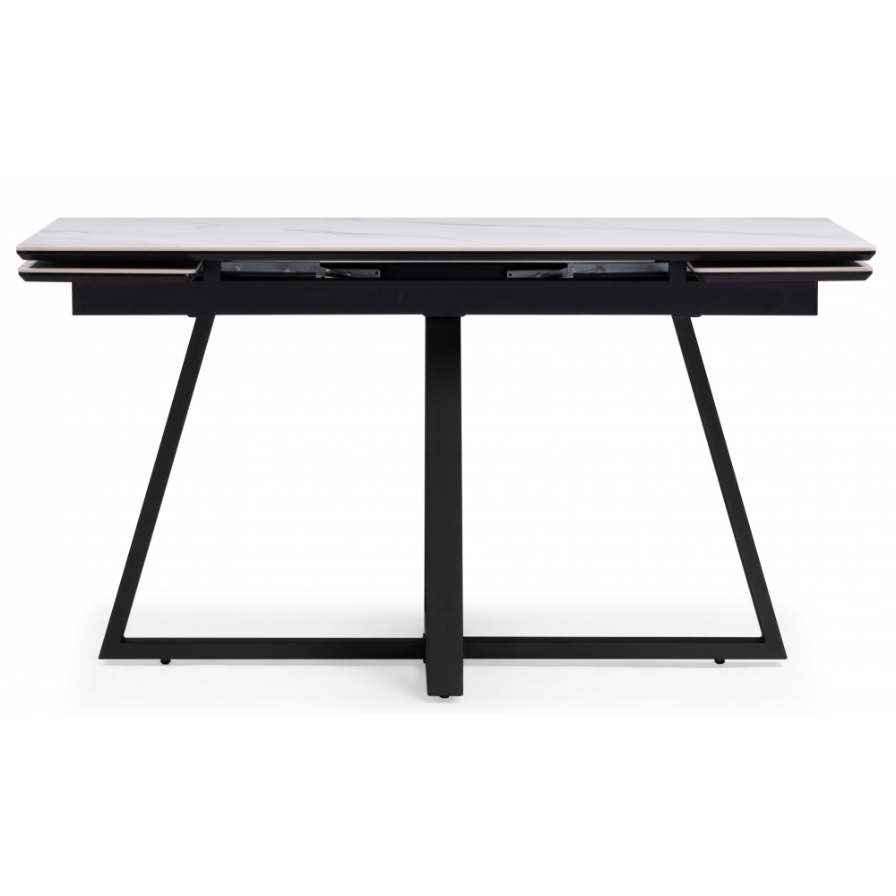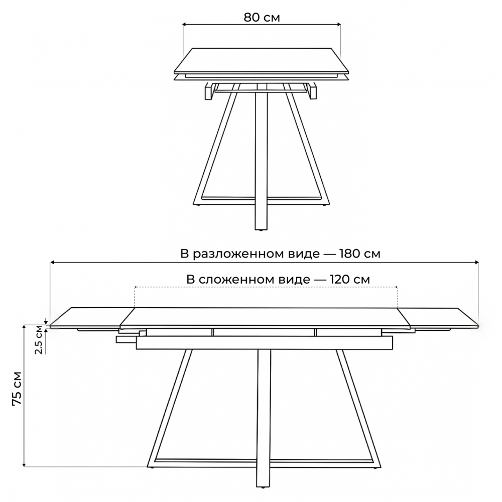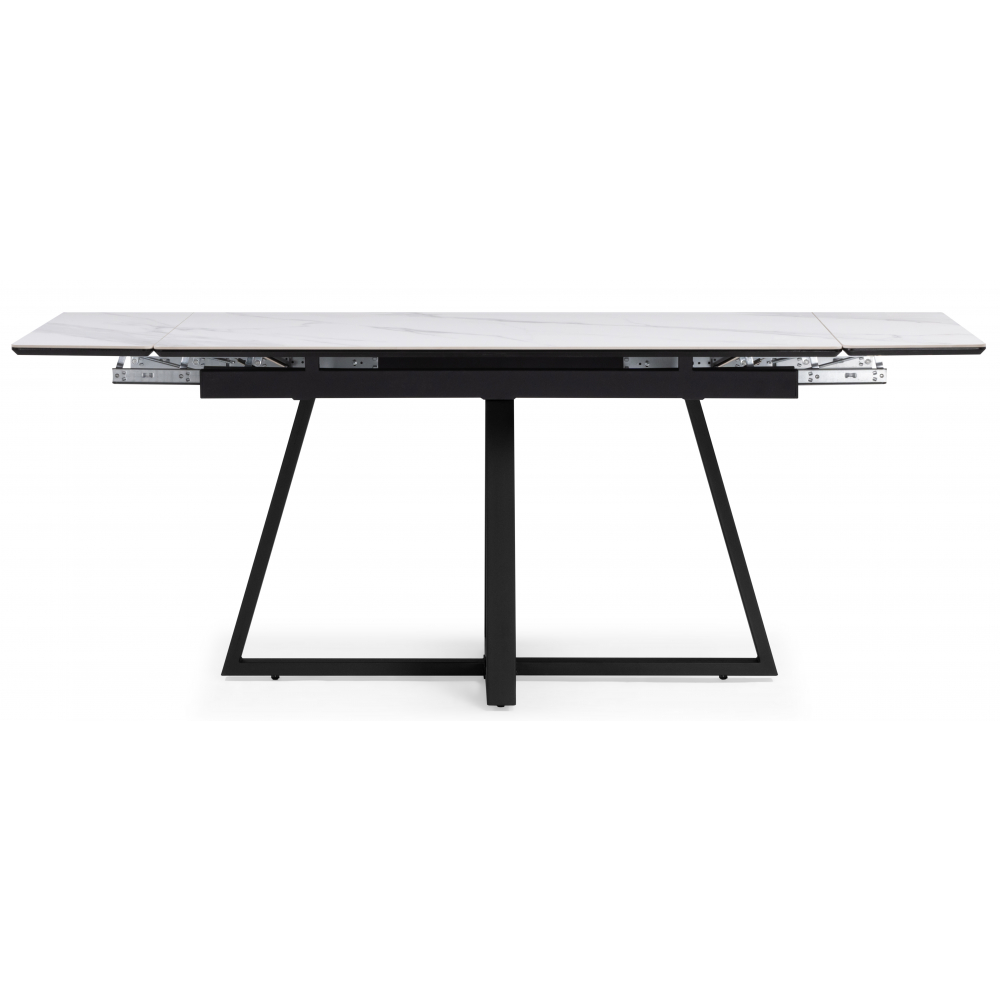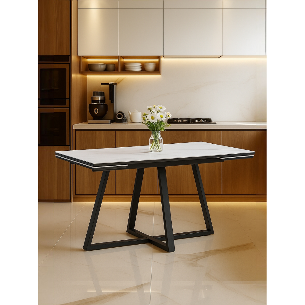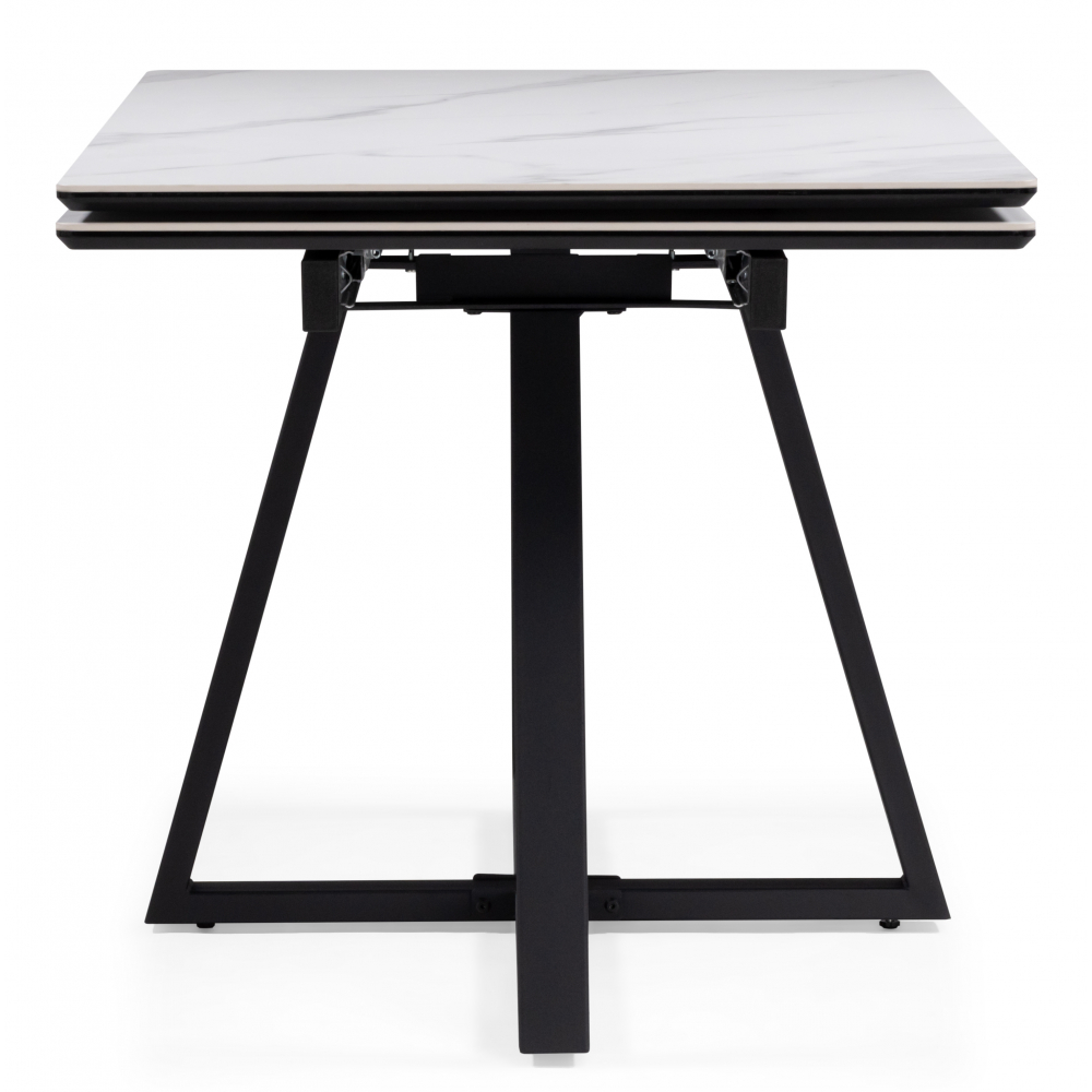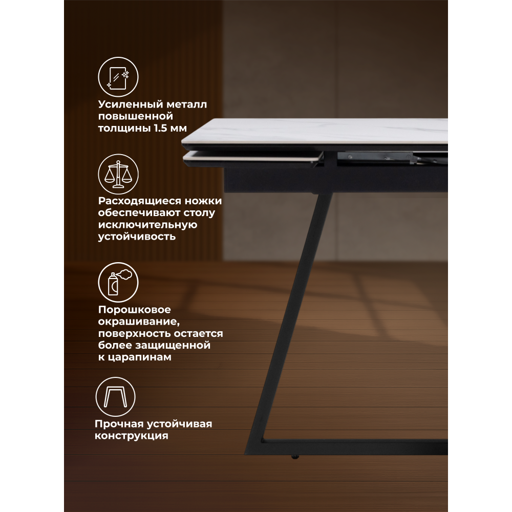 Раскладной стол Памелла с керамической столешницей. Механизм раскладки "крылья", удобный и практичный, увеличивает столешницу до 180см, боковые вставки выезжают из под столешницы. Основа столешницы из МДФ - 16мм, сверху керамическое полотно - 6мм. Порошковое окрашивание - дополнительная защита от царапин. Массивные ножки толщиной 3мм. Устойчивая и надёжная конструкция