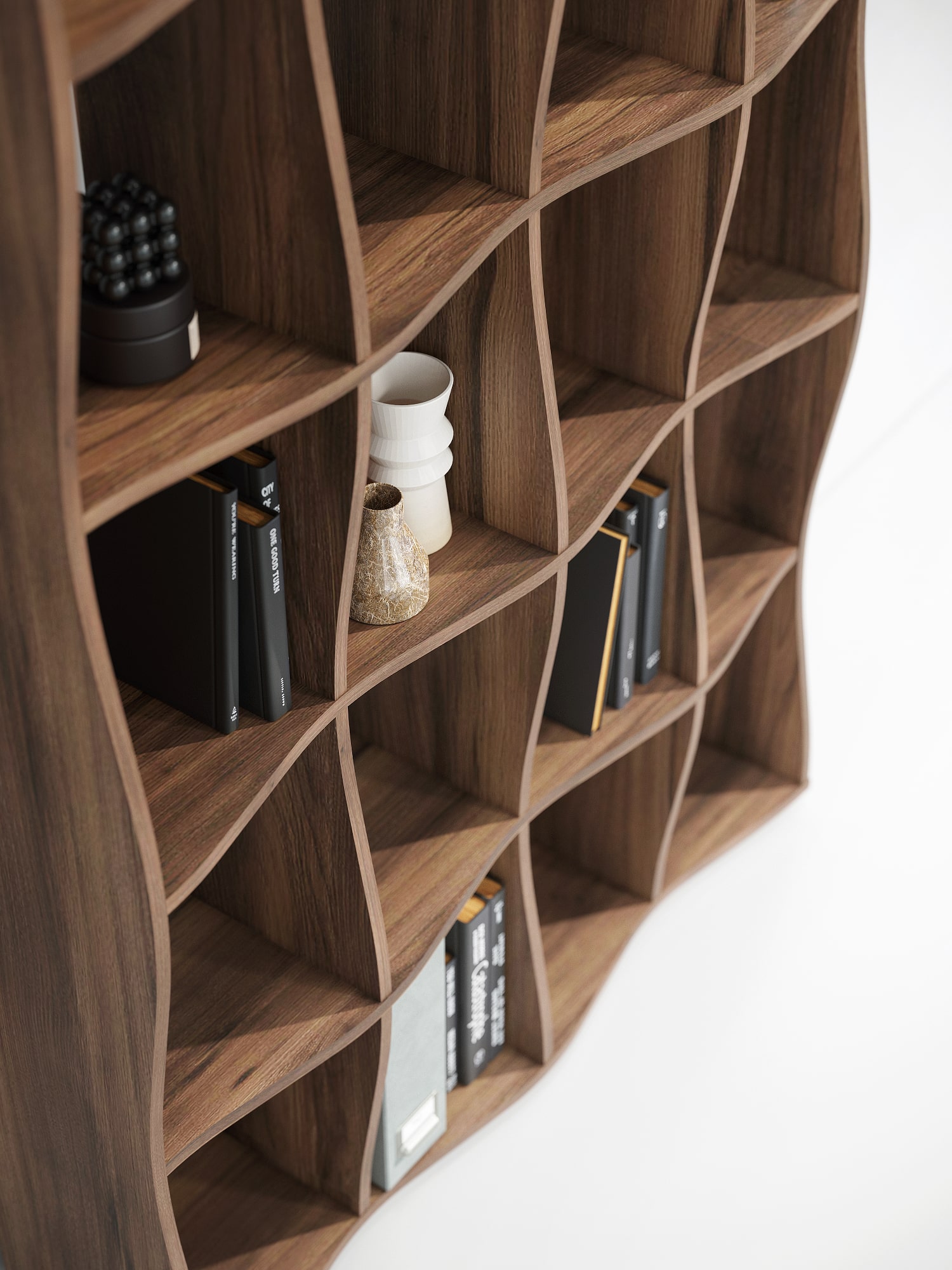 Функциональность: открытые полки для хранения книг, аксессуаров и декора.