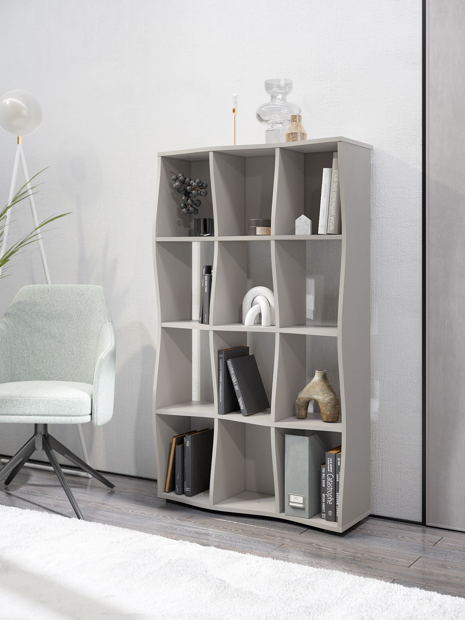 • Функциональность: открытые полки для хранения книг, аксессуаров и декора.