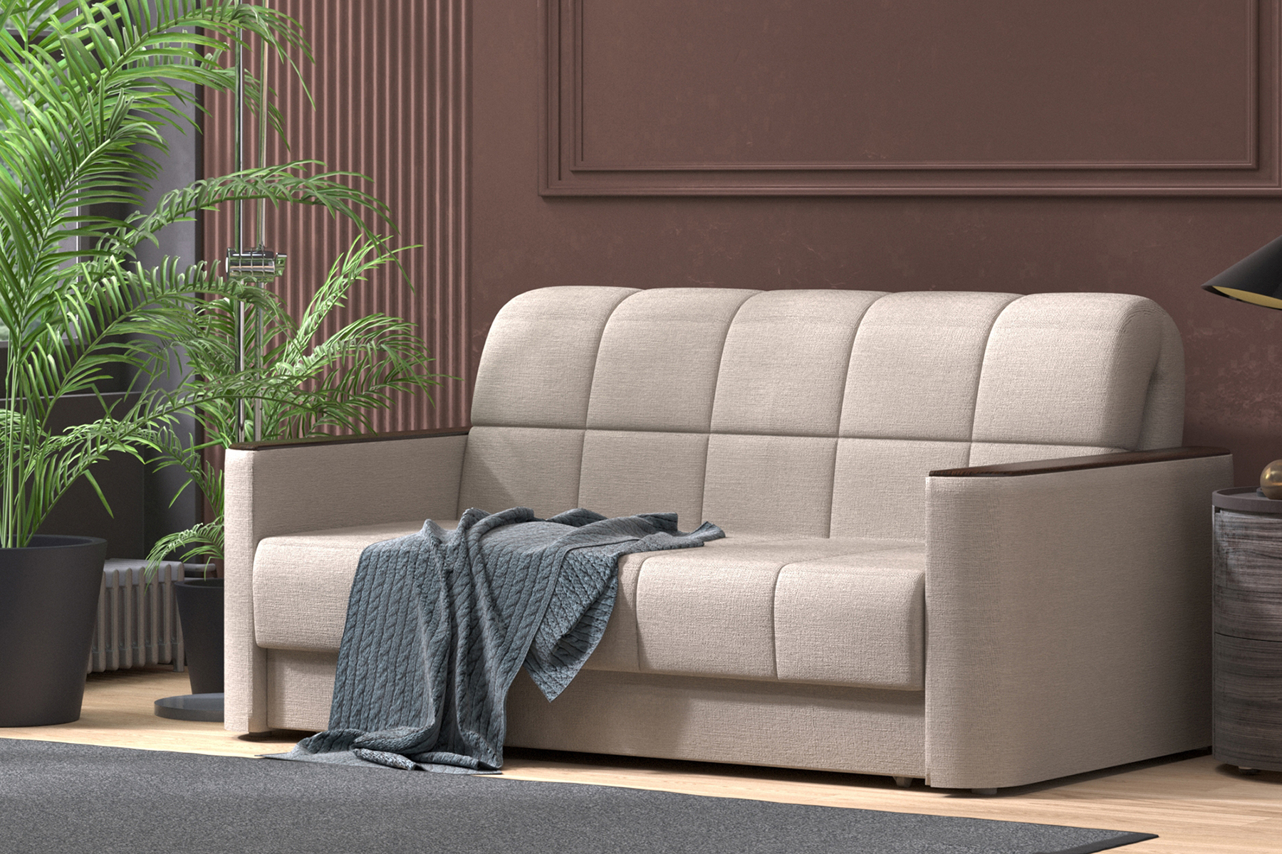 Модель сочетает в себе комфорт и практичность: удобное посадочное место, мягкие подушки и надёжный механизм трансформации обеспечат полноценный отдых днём и комфортный сон ночью. Диван легко раскладывается, превращаясь в просторное спальное место, а внутри — вместительный ящик для хранения белья и других вещей.
