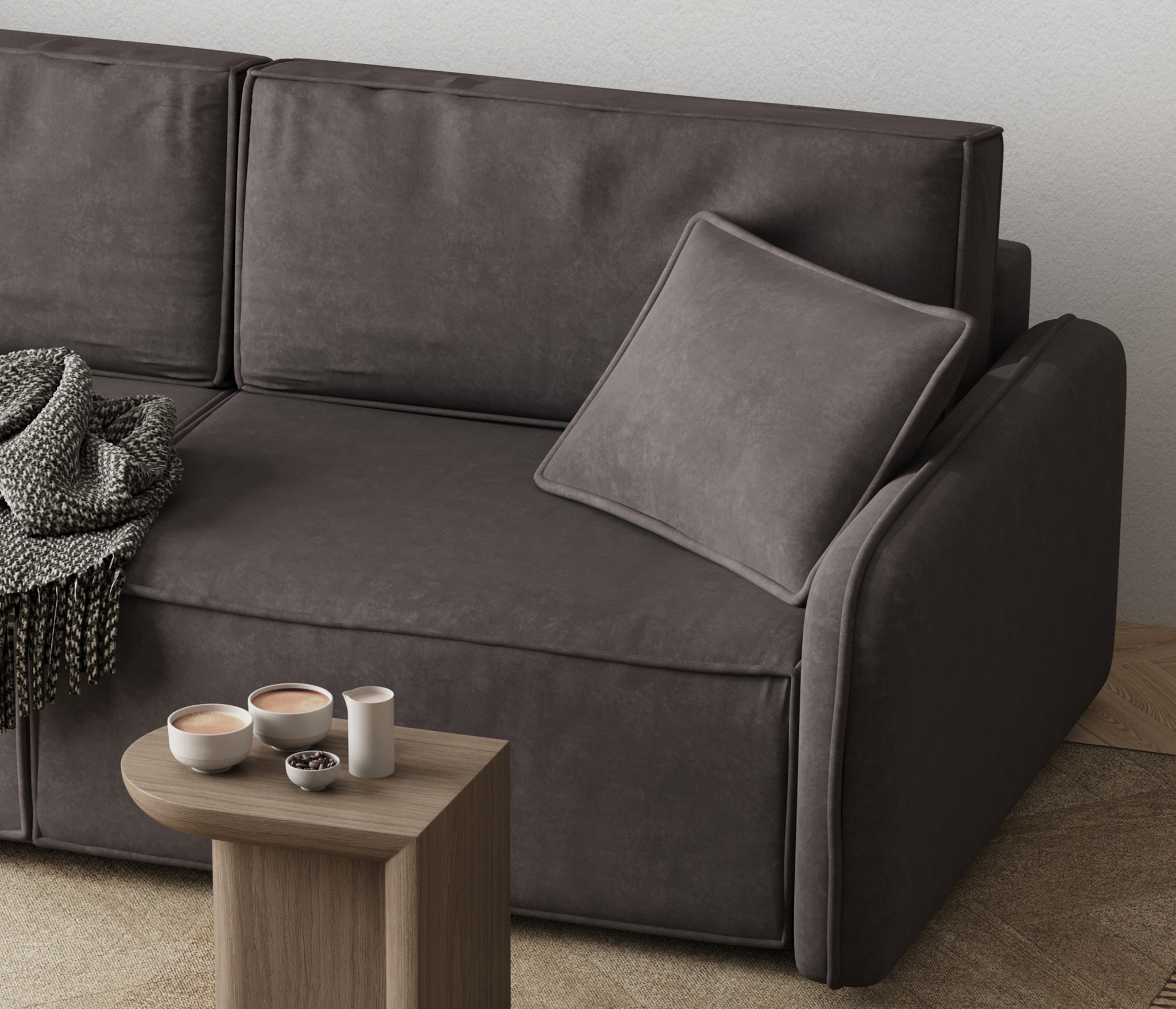 Удобный механизм: Двухсекционная еврокнижка позволяет раскладывать диван частями, подстраивая его под ваши нужды.