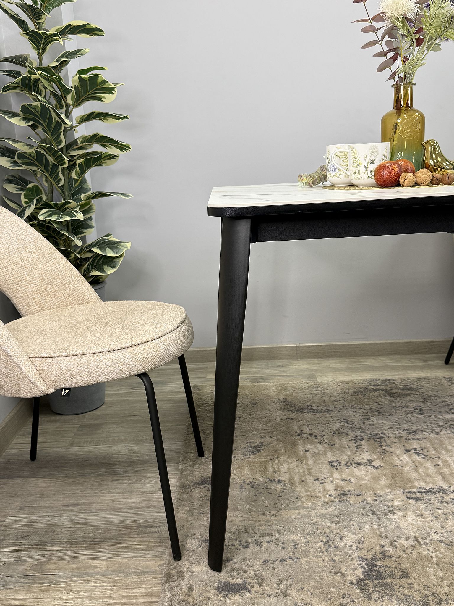 Опоры стола расположены максимально широко, что обеспечивает комфорт для сидящих и не создает помех. Благодаря такой конструкции, вы легко можете разместить два широких стула по бокам стола, делая его удобным для всей семьи или гостей.