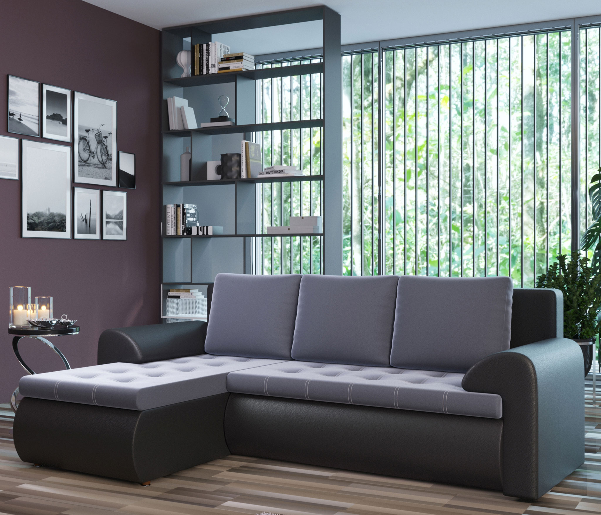 Угловой диван Ванкувер левый, экокожа/велюр                                 (Черный/Серый)