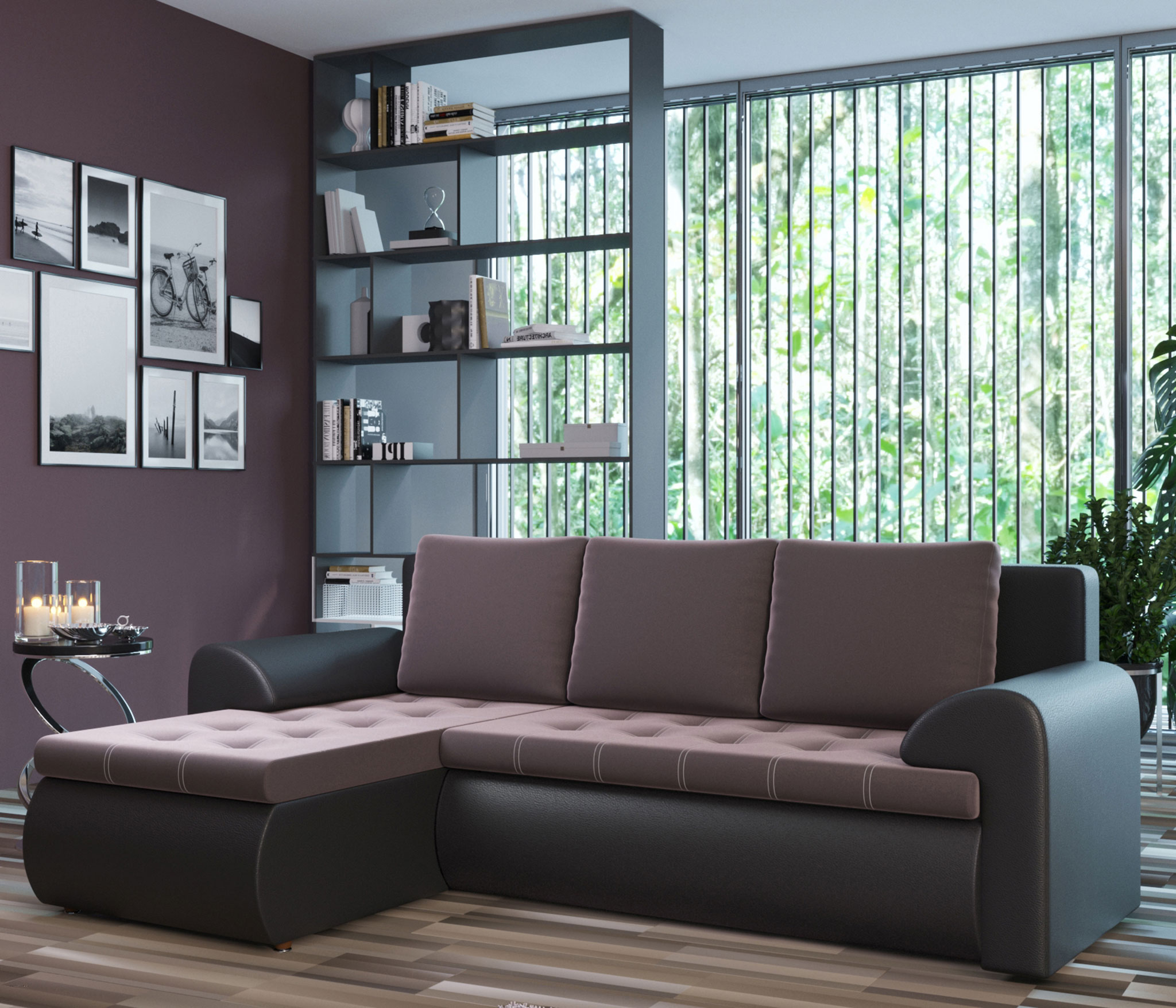 Отзывы о Столплит Угловой диван Ванкувер левый, экокожа/велюр Черный/Средне-коричневый