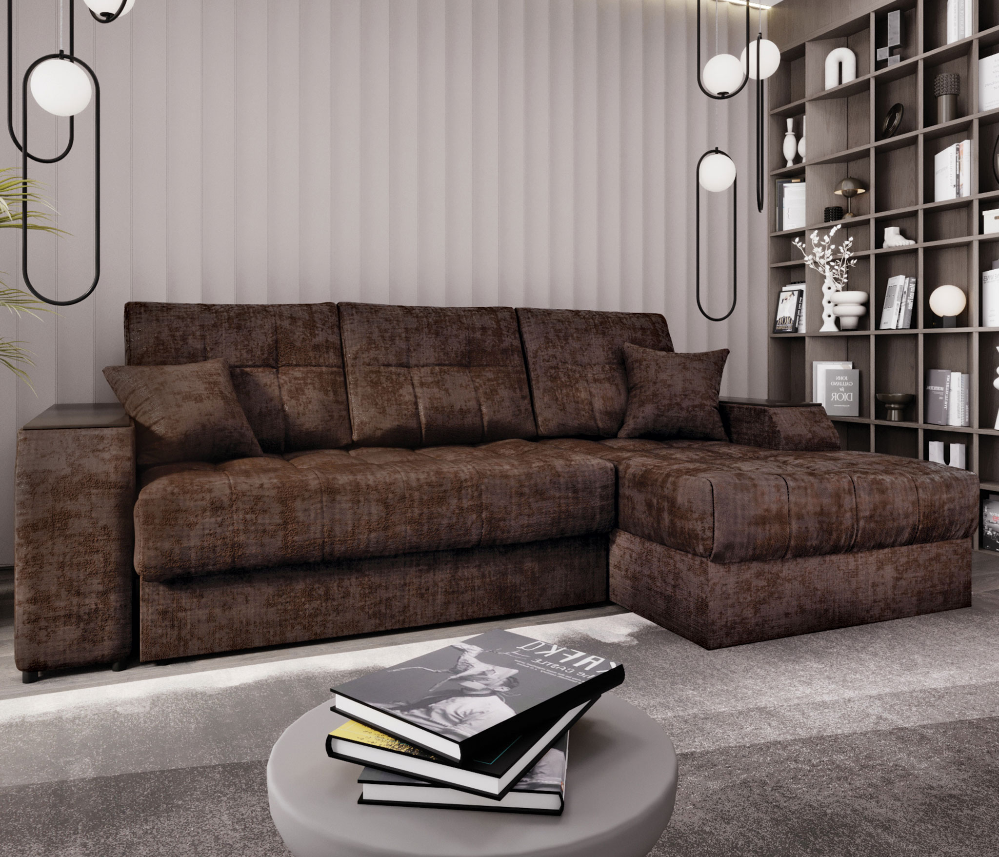 Угловой диван-кровать Лас-Вегас правый, шенилл                                 (Коричневый)