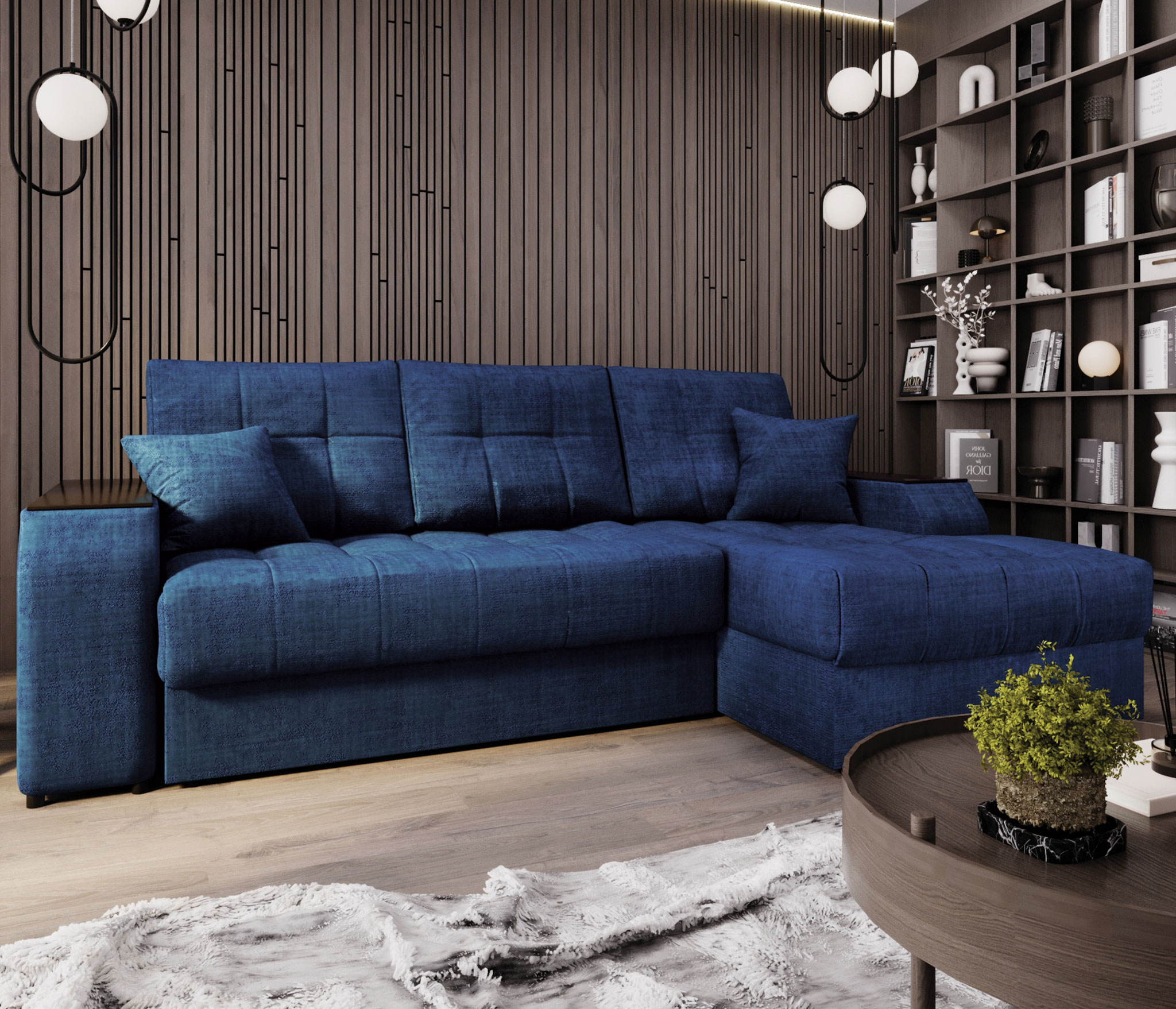 Угловой диван-кровать Лас-Вегас правый, шенилл                                 (Синий)