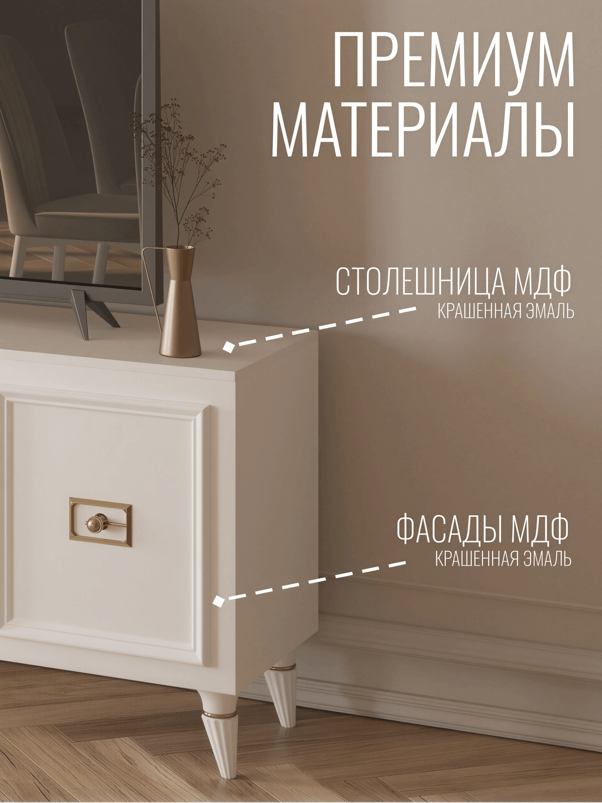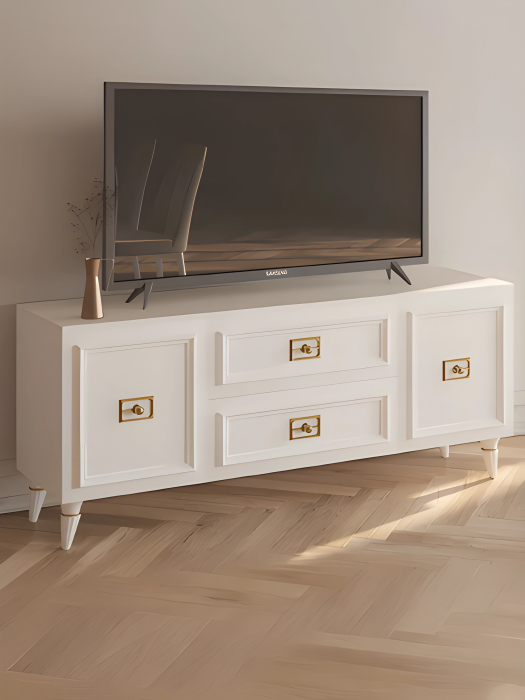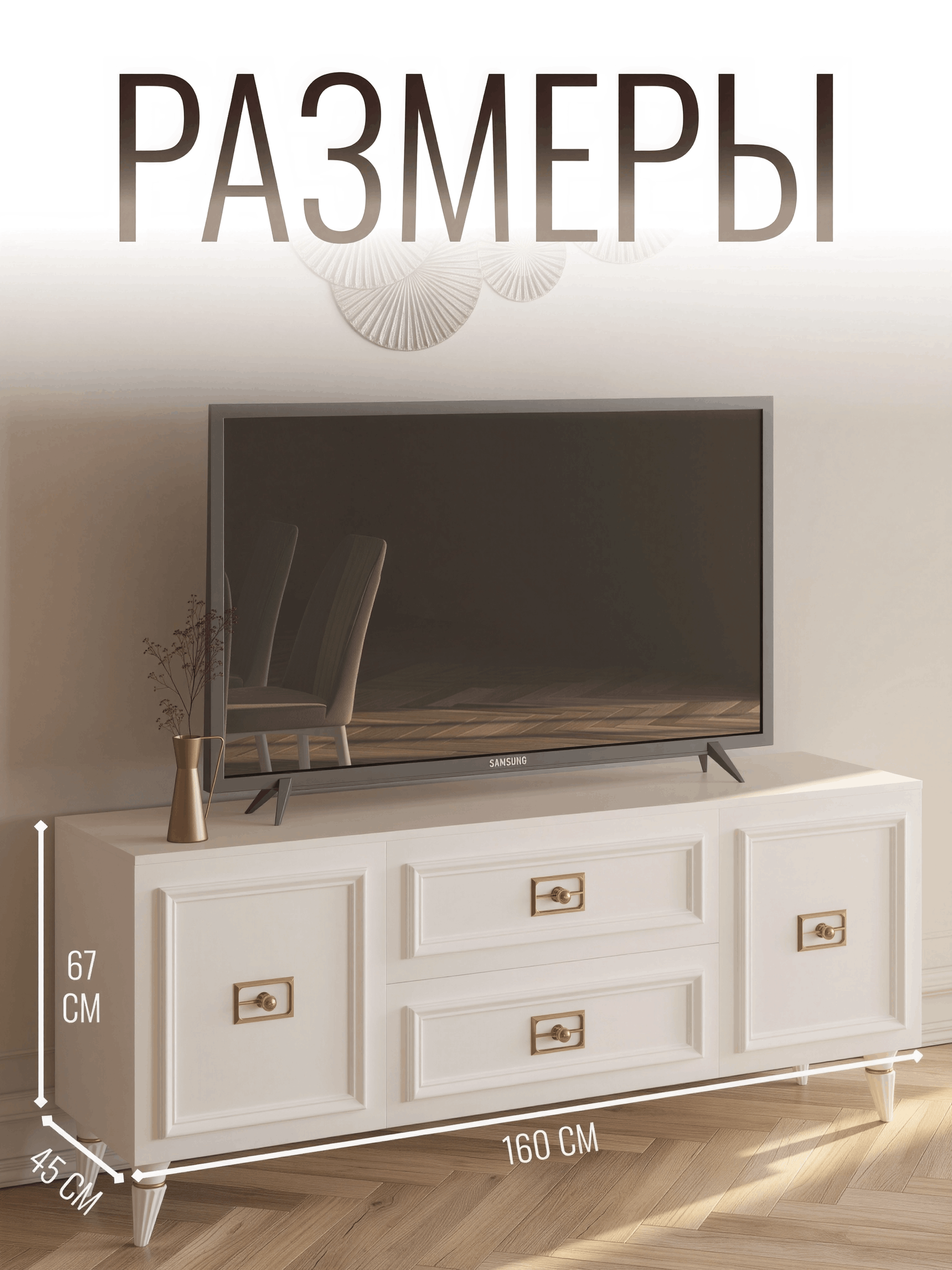Представляем вам изысканную тумбу ТВ в стиле неоклассика, созданную для тех, кто ценит элегантность и изысканность в каждой детали. Этот функциональный и стильный предмет мебели станет идеальным дополнением вашего интерьера, придавая ему атмосферу роскоши и утонченности. Тумба изготовлена из высококачественного ЛДСП, обладает не только привлекательным внешним видом, но и долговечностью. Материал обеспечивает надежность конструкции и устойчивость к механическим повреждениям, что делает её идеальным выбором для долгосрочного использования. Специально разработанная конструкция тумбы обеспечивает оптимальное размещение телевизора и другой мультимедийной техники. Ящики и полки предоставляют достаточно места для хранения дисков, пультов управления и других необходимых аксессуаров. Тумба для ТВ отличается изысканными декоративными элементами, добавляющими изысканности и уникальности. Её изогнутые линии, изящные резные узоры и изумительная отделка создают гармоничное сочетание с современной техникой, добавляя интерьеру неповторимого шарма. Если вы ищете мебель, которая объединяет в себе функциональность, стиль и качество, тумба для ТВ в стиле неоклассика из ЛДСП – идеальное решение. Позвольте этой тумбе подчеркнуть уникальность вашего пространства и создать атмосферу уюта и роскоши одновременно.