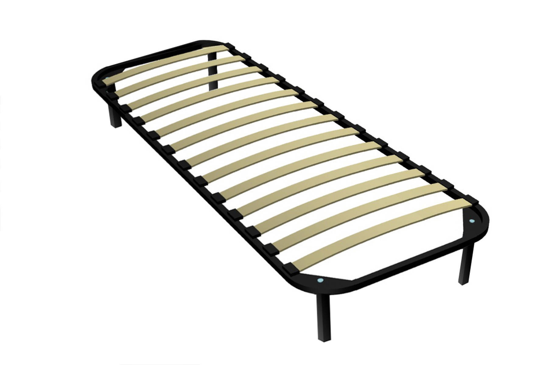 Усиленное ортопедическое основание для кровати в чёрном цвете. Каркас сделан из прочного металлического профиля и оснащён дополнительной поперечной стяжкой, которая помогает равномерно распределять нагрузку. Подходит для матраса размером 90×200 см. Конструкция неразборная: выполнена из стальной трубы на 5 ножках, с закреплёнными деревянными ламелями. Все детали соединены сваркой, что делает основание очень прочным. Плюсы основания: высокая надёжность; длительный срок службы; не требует подтяжки соединений. Максимальная нагрузка на одно спальное место: до 150 кг. Характеристики: толщина ламели — 8 мм; ширина ламели — 60 мм; расстояние между ламелями — 80 мм; профиль — 30×30×1.3 мм.
