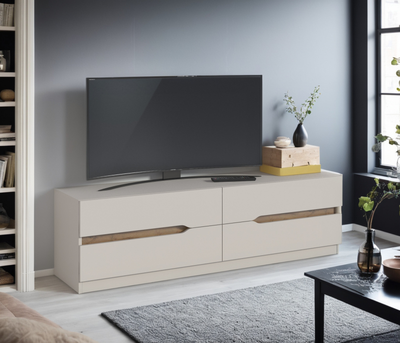 Особенностью данной модели являются плавные вырезы в фасадах, которые не только удобны для открывания, но и добавляют оригинальности. Внутри этих вырезов расположены вставки цвета Дуб вотан, что создает контраст и подчеркивает эстетику мебели.