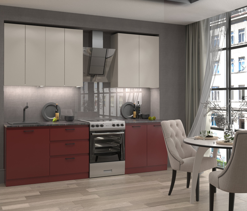 Шкаф навесной ш60 - 2 шт Шкаф навесной ш80 Шкаф напольный с ящиками ш60 Шкаф напольный ш60 Шкаф напольный ш80 Материал фасада-ЛДСП, Кромка ABS Материал каркаса-ЛДСП, Кромка ABS Материал ручек-Пластик Цвет ручек-Черный матовый Навес фасадов-Универсальный Тип направляющих-Шариковые полного выдвижения Тип сборки-Модули можно переставлять Вес, кг-147.9 - Петли четырехшарнирные с доводчиком - Направляющие шариковые полного выдвижения - Ручки пластиковые. - Цвет ручек - Черный матовый - Кухня столешницей не комплектуется. - Навесные модули имеют две внутренних полки, напольные модули одну внутреннюю полку - Экологически безопасное ЛДСП с классом эмиссии летучих веществ Е1 Опора подпятник с гвоздем Полкодержатель 5,4 мм металл Цвет ручек - Черный матовый Задняя стенка модулей белого цвета Столешница, бытовая техника, вытяжка, сушка, мойка и освещение в комплект не входят. Модульная кухня «Ревилья» - современный дизайн и продуманная функциональность Модульная кухня «Ревилья» - это сочетание стиля, практичности и комфорта. Широкий выбор напольных и навесных модулей различных размеров и конфигураций позволяет легко составить гарнитур под особенности вашего помещения - от компактной кухни до просторного кухонного пространства. Лаконичные линии, выразительные детали и современные материалы делают «Ревилью» универсальным решением для интерьера любого стиля. Функциональность и исполнение Каждый элемент кухни «Ревилья» продуман до мелочей. Навесные шкафы оснащены двумя внутренними полками, напольные — одной, что обеспечивает удобное и рациональное хранение посуды и кухонных принадлежностей. Задние стенки белого цвета придают конструкции аккуратный и эстетичный вид. Кухня не комплектуется столешницей, что даёт возможность подобрать её отдельно — под нужную текстуру, цвет и толщину, создавая индивидуальный облик гарнитура. Фурнитура и конструктивные решения • Петли четырёхшарнирные с доводчиком - лёгкое, плавное и бесшумное открывание дверей. • Шариковые направляющие полного выдвижения обеспечивают комфортное использование ящиков и доступ к их содержимому. • Ручки из пластика цвета “чёрный матовый” добавляют контраст и подчёркивают современный характер кухни. • Металлические полкодержатели диаметром 5,4 мм обеспечивают надёжное крепление и устойчивость полок. Характеристики модулей • Высота верхних шкафов - 91 см • Глубина верхних шкафов - 31,7 см • Высота нижних шкафов - 82,4 см • Глубина нижних шкафов - 51,9 см • Материал - ЛДСП 16 мм, экологический класс E1 (безопасно для жилых помещений)