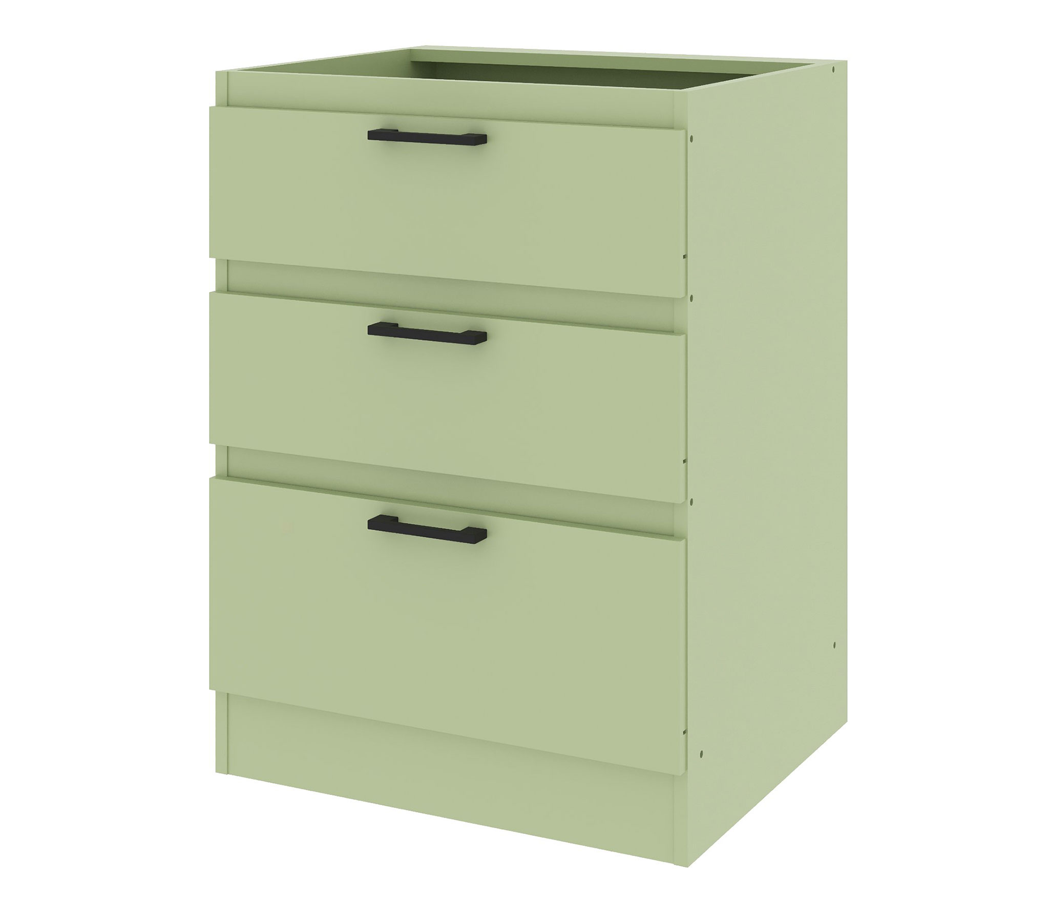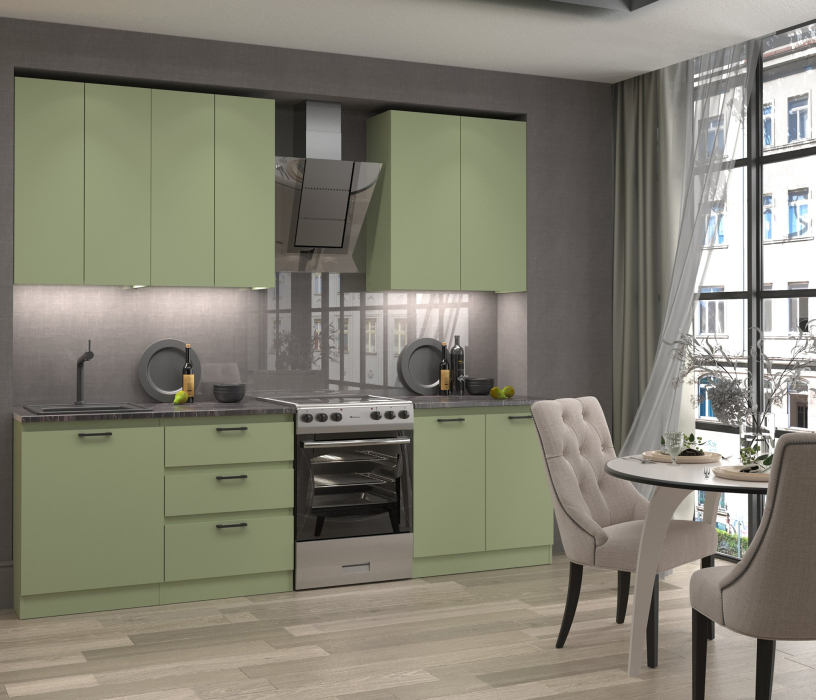 Шкаф навесной ш60 - 2 шт Шкаф навесной ш80 Шкаф напольный с ящиками ш60 Шкаф напольный ш60 Шкаф напольный ш80 Материал фасада-ЛДСП, Кромка ABS Материал каркаса-ЛДСП, Кромка ABS Материал ручек-Пластик Цвет ручек-Черный матовый Навес фасадов-Универсальный Тип направляющих-Шариковые полного выдвижения Тип сборки-Модули можно переставлять Вес, кг-147.9 - Петли четырехшарнирные с доводчиком - Направляющие шариковые полного выдвижения - Ручки пластиковые. - Цвет ручек - Черный матовый - Кухня столешницей не комплектуется. - Навесные модули имеют две внутренних полки, напольные модули одну внутреннюю полку - Экологически безопасное ЛДСП с классом эмиссии летучих веществ Е1 Опора подпятник с гвоздем Полкодержатель 5,4 мм металл Цвет ручек - Черный матовый Задняя стенка модулей белого цвета Столешница, бытовая техника, вытяжка, сушка, мойка и освещение в комплект не входят. Модульная кухня «Ревилья» - современный дизайн и продуманная функциональность Модульная кухня «Ревилья» - это сочетание стиля, практичности и комфорта. Широкий выбор напольных и навесных модулей различных размеров и конфигураций позволяет легко составить гарнитур под особенности вашего помещения - от компактной кухни до просторного кухонного пространства. Лаконичные линии, выразительные детали и современные материалы делают «Ревилью» универсальным решением для интерьера любого стиля. Функциональность и исполнение Каждый элемент кухни «Ревилья» продуман до мелочей. Навесные шкафы оснащены двумя внутренними полками, напольные — одной, что обеспечивает удобное и рациональное хранение посуды и кухонных принадлежностей. Задние стенки белого цвета придают конструкции аккуратный и эстетичный вид. Кухня не комплектуется столешницей, что даёт возможность подобрать её отдельно — под нужную текстуру, цвет и толщину, создавая индивидуальный облик гарнитура. Фурнитура и конструктивные решения • Петли четырёхшарнирные с доводчиком - лёгкое, плавное и бесшумное открывание дверей. • Шариковые направляющие полного выдвижения обеспечивают комфортное использование ящиков и доступ к их содержимому. • Ручки из пластика цвета “чёрный матовый” добавляют контраст и подчёркивают современный характер кухни. • Металлические полкодержатели диаметром 5,4 мм обеспечивают надёжное крепление и устойчивость полок. Характеристики модулей • Высота верхних шкафов - 91 см • Глубина верхних шкафов - 31,7 см • Высота нижних шкафов - 82,4 см • Глубина нижних шкафов - 51,9 см • Материал - ЛДСП 16 мм, экологический класс E1 (безопасно для жилых помещений)